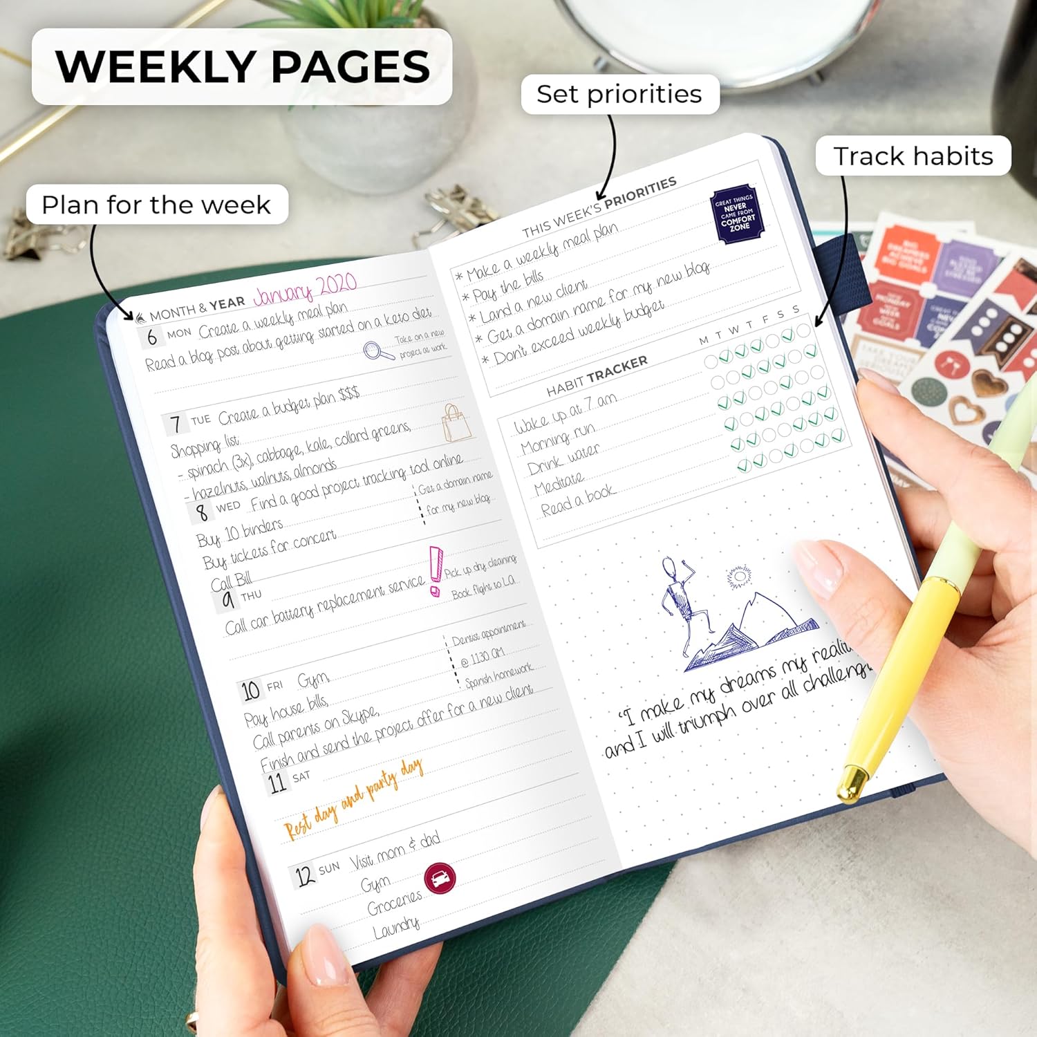 PORTABLE POCKET SIZE – Measuring just 3.7×6.7 inches, this weekly pocket planner can easily fit into any purse. This life planner lasts a whole year, and includes monthly calendars, weekly pages, habit tracker, and effective goal-setting tools.
