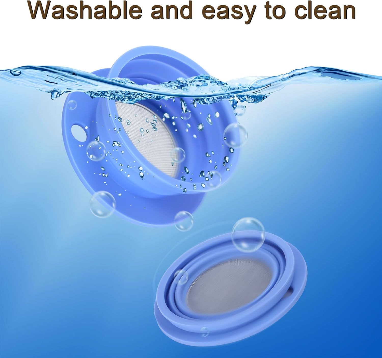 [Reusable and Lasting]: Made from food-grade silicone and reusable fine stainless steel mesh filter, the reusable coffee strainer can be reused and built to last. The reusable extra-fine metal mesh Screen filter at the bottom enusres no grounds end up in your cups