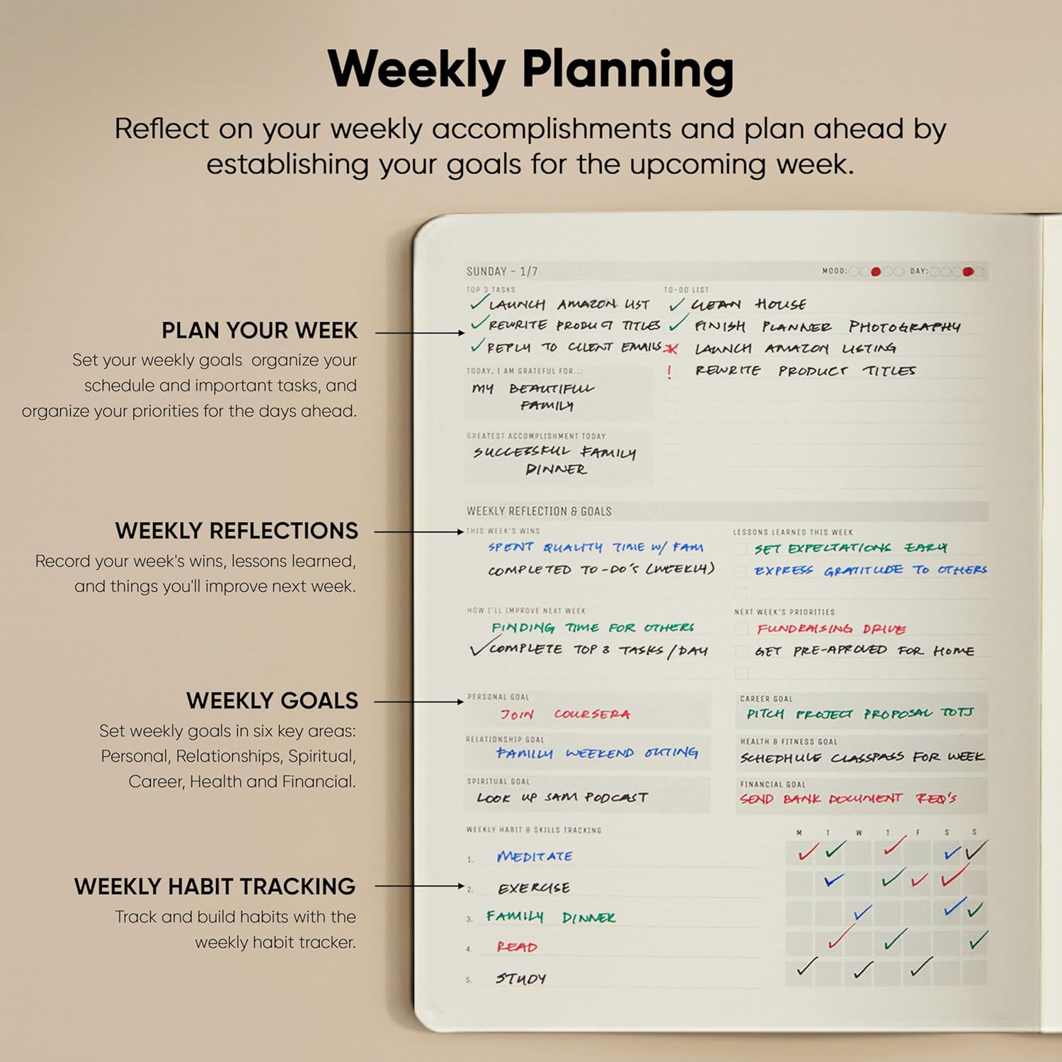 2026 Weekly Planner with Planner Stickers & Other Bonuses: Use the weekly planner sections to plan ahead each week and reflecting on your weekly performance. This 2026 weekly planner also comes with 5 Bonus features including planner stickers, a habit tracker, weekly inspirational quotes and space for notes.