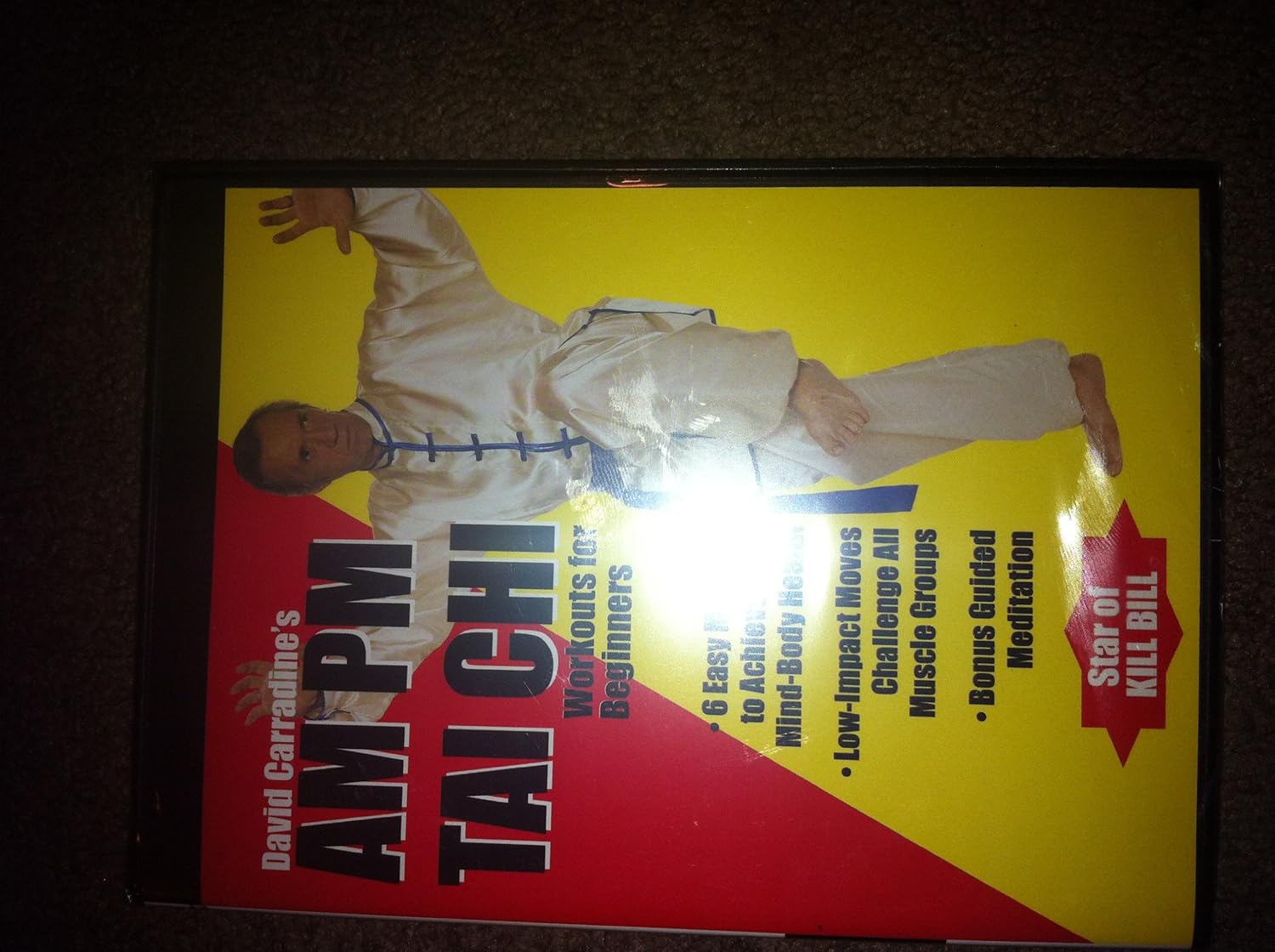 AM Relaxing the mind is essential to achieving total health. Unfortunately, busy and stressful lives causes tension that hinders our ability to unwind and fully relax. David Carradine will show you how to use the proven techniques of Tai Chi to totally relax your mind while also getting a satisfying full body workout. This is accomplished by Tai Chi movements that rest the mind yet strengthen and work the muscles. Additional exercises will clear the mind, relieve stress and pull the energy of the active mind into the lower abdomen, the body s natural energy source. This thirty- minute program will fully prepare you for meaningful relaxation the key to achieve Peace of Mind. PM Let David Carradine energize your body with the soothing, flowing movements of Tai Chi. This ancient physical art form uses stretching, deep breathing and invigorating circular motion to gently awaken and loosen your entire body. As your body slowly warms, carefully designed moves will tone and strengthen muscles. You will also clear and relax the mind while stimulating and increasing your natural energy flow. This thirty- minute program will enlighten the senses and refresh the spirit. Your entire body will enjoy a complete workout that energizes and refreshes.
