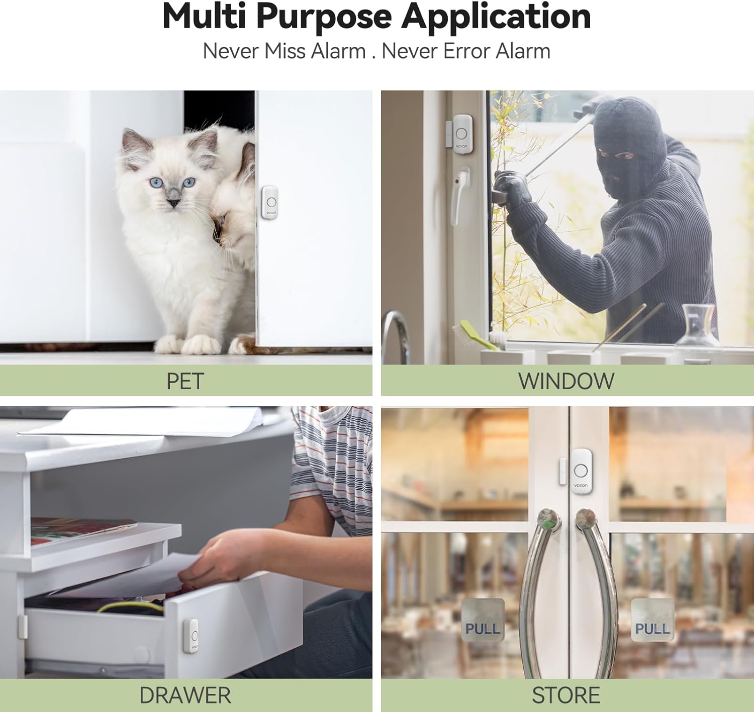 【Safe and Secure】 This door alarms can instantly detect any movement in your door or window. Now you can keep intruders out with our 100db, super-powered alarm system. The anti-theft design may have a slightly loud volume for children, so please remember not to scare them.