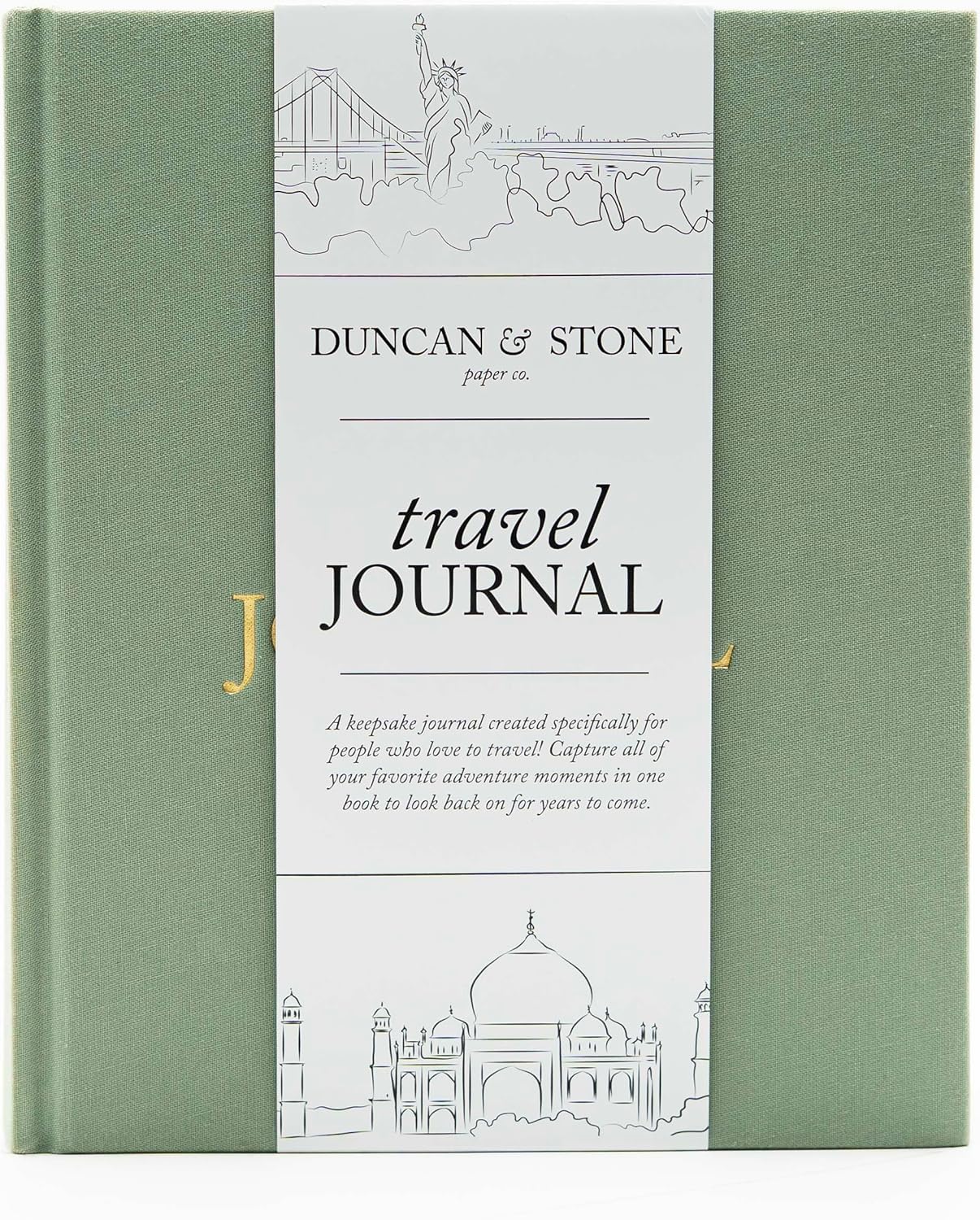 DUNCAN & STONE PAPER CO. Travel Journals – Elegant Journaling Notebook To Record All Your Travel Fun, & More – 110 Page Linen Hardcover Journal For Up To 15 Trips (Sage Green)