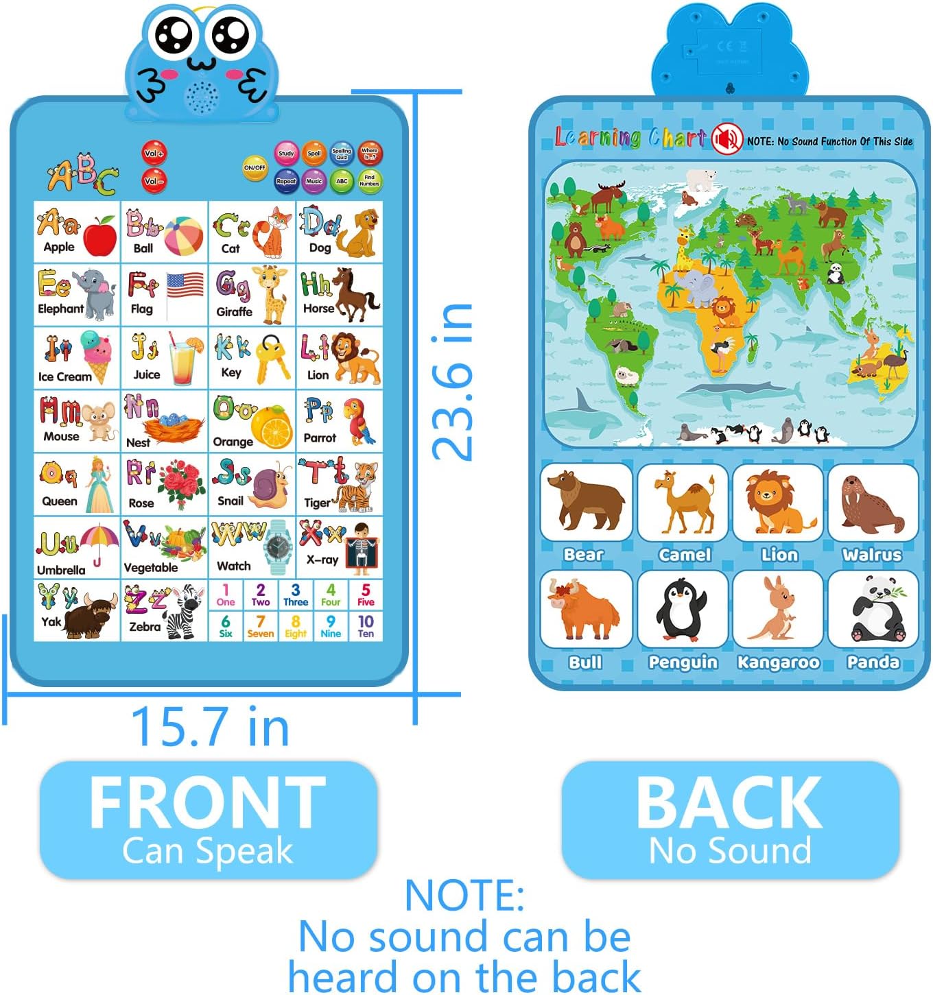 Electronic Interactive Double-Sided Alphabet Wall Chart, Talking ABC & 123 & Music & Learning Poster, Educational Toddlers Toys for Ages 3-4 Kids Gift, Best for Preschool Boys & Girls(Blue)