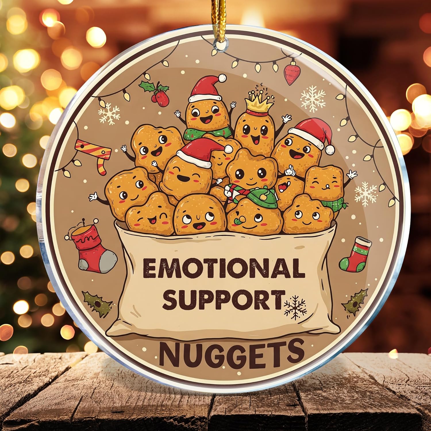 Emotional Support Nuggets – Cute Mental Health Friends Family Women Gifts Ideas – Christmas Ornaments – Christmas Decorations – 3.6 in Acrylic – Funny Gag Gifts – White Elephant – Stocking Stuffers