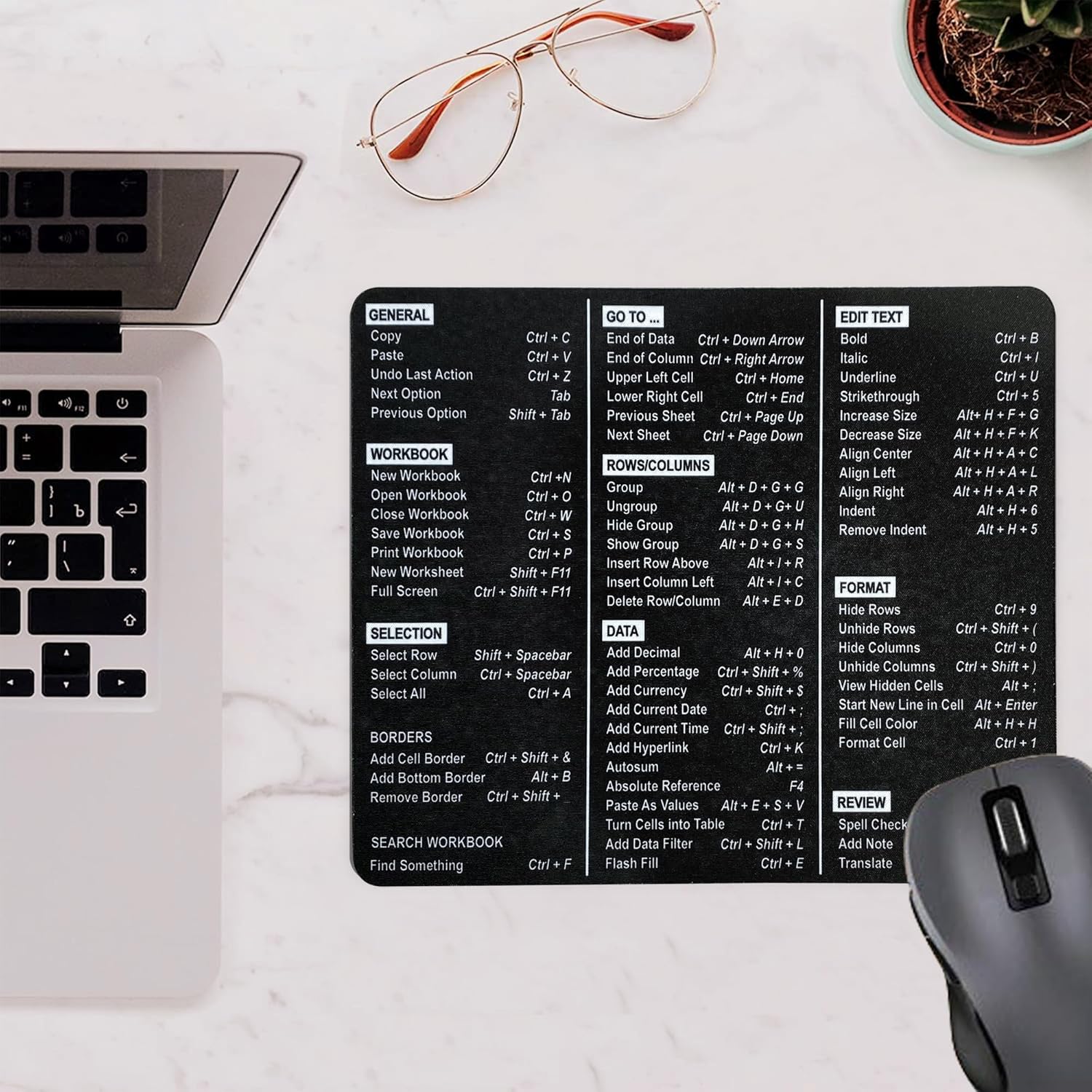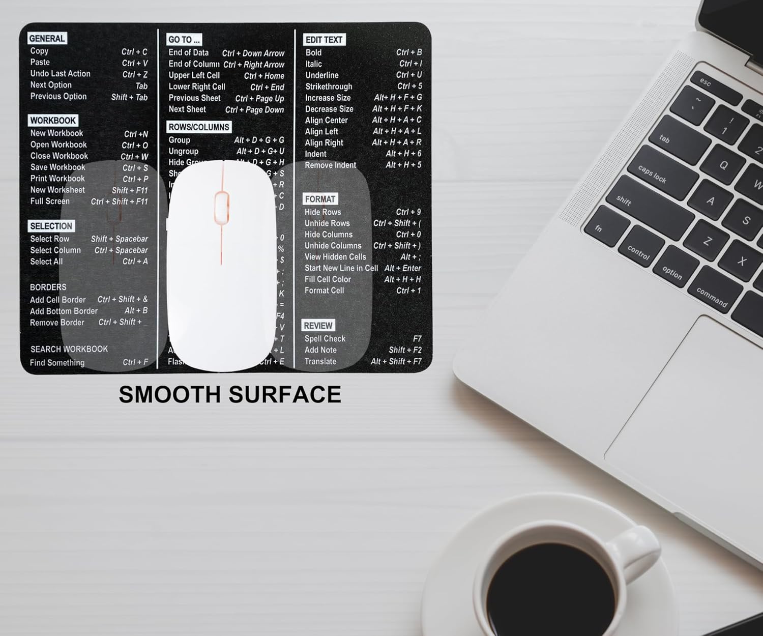 Increase your productivity: Our Excel Shortcuts Mouse Pad features 66 commonly used shortcuts to help you breeze through your Excel tasks with ease.