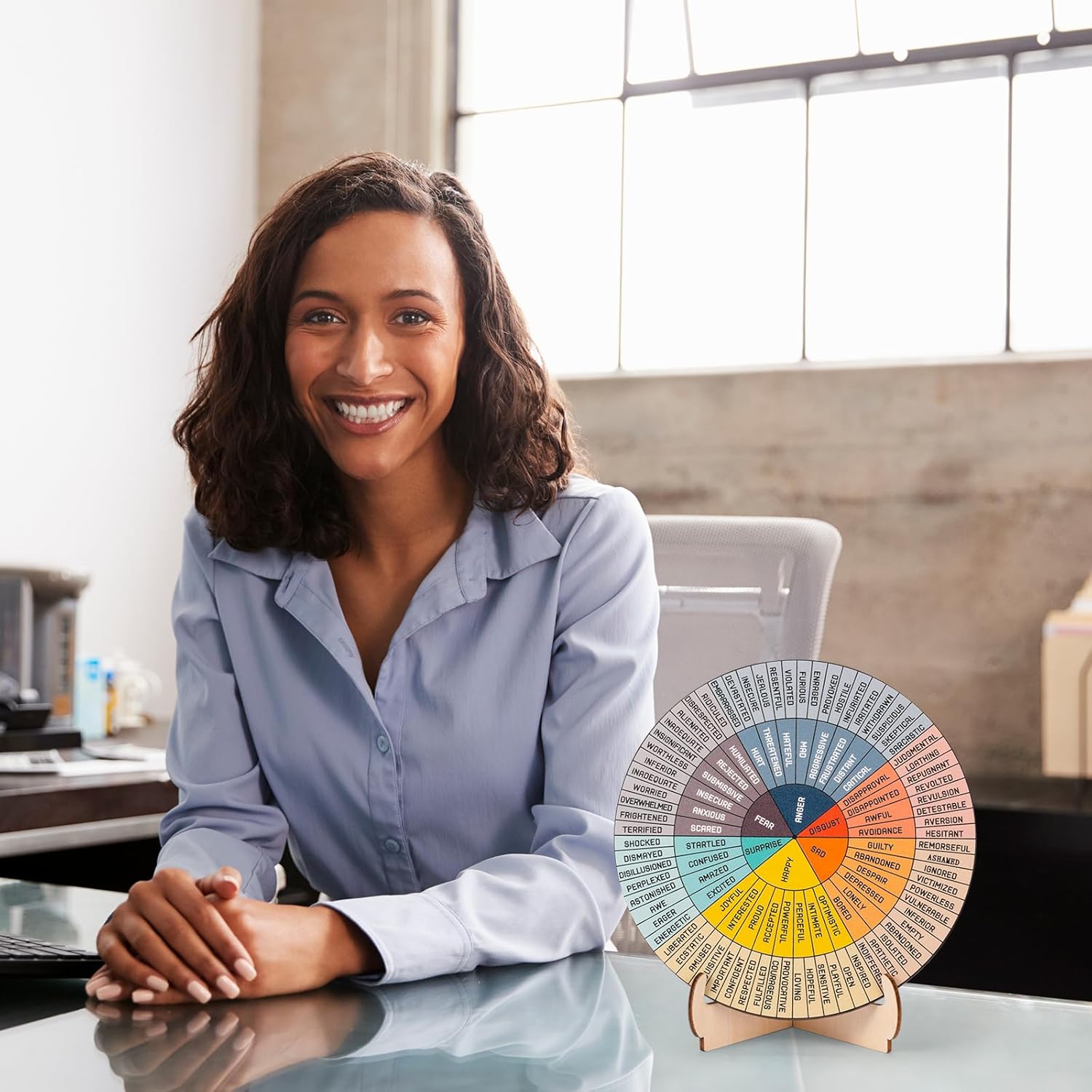 A TRUSTED COMPANION IN DECIPHERING EMOTIONS – Come with a stand for convenient display on your desk, our Emotion Wheel is designed to assist in managing personal emotions and understanding those of others. Various colors to represent different emotions, providing a clear visual reference. A valuable addition to both personal and professional settings.