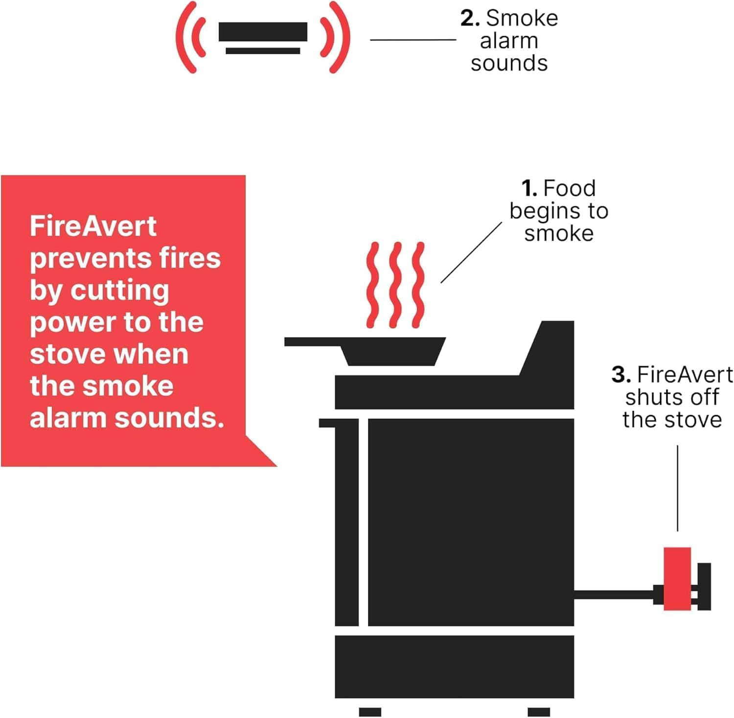 STOPS KITCHEN FIRES – Through smoke alarm sound detection, FireAvert monitors and cuts the power to your stove, safeguarding you and your home.