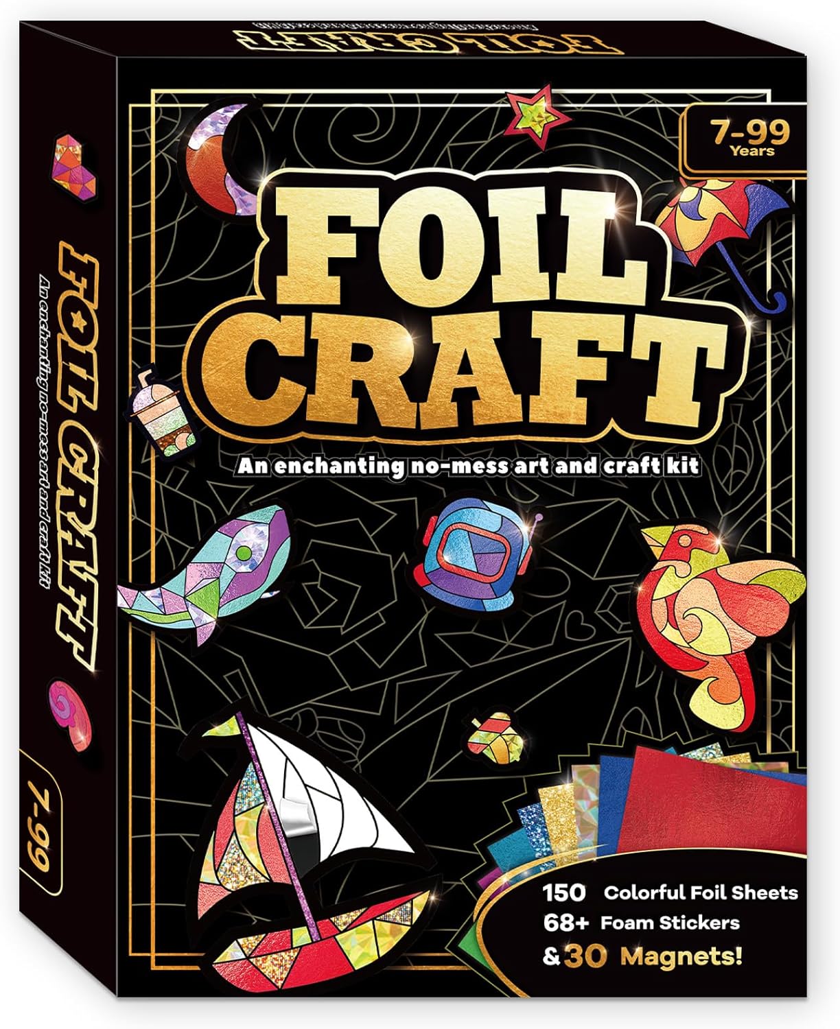 WHAT’S INCLUDED ON THE PACKAGE – 150 colorful foil sheets, 68+ foam stickers 30 magnets and Googly Eyes, Instruction Manual
