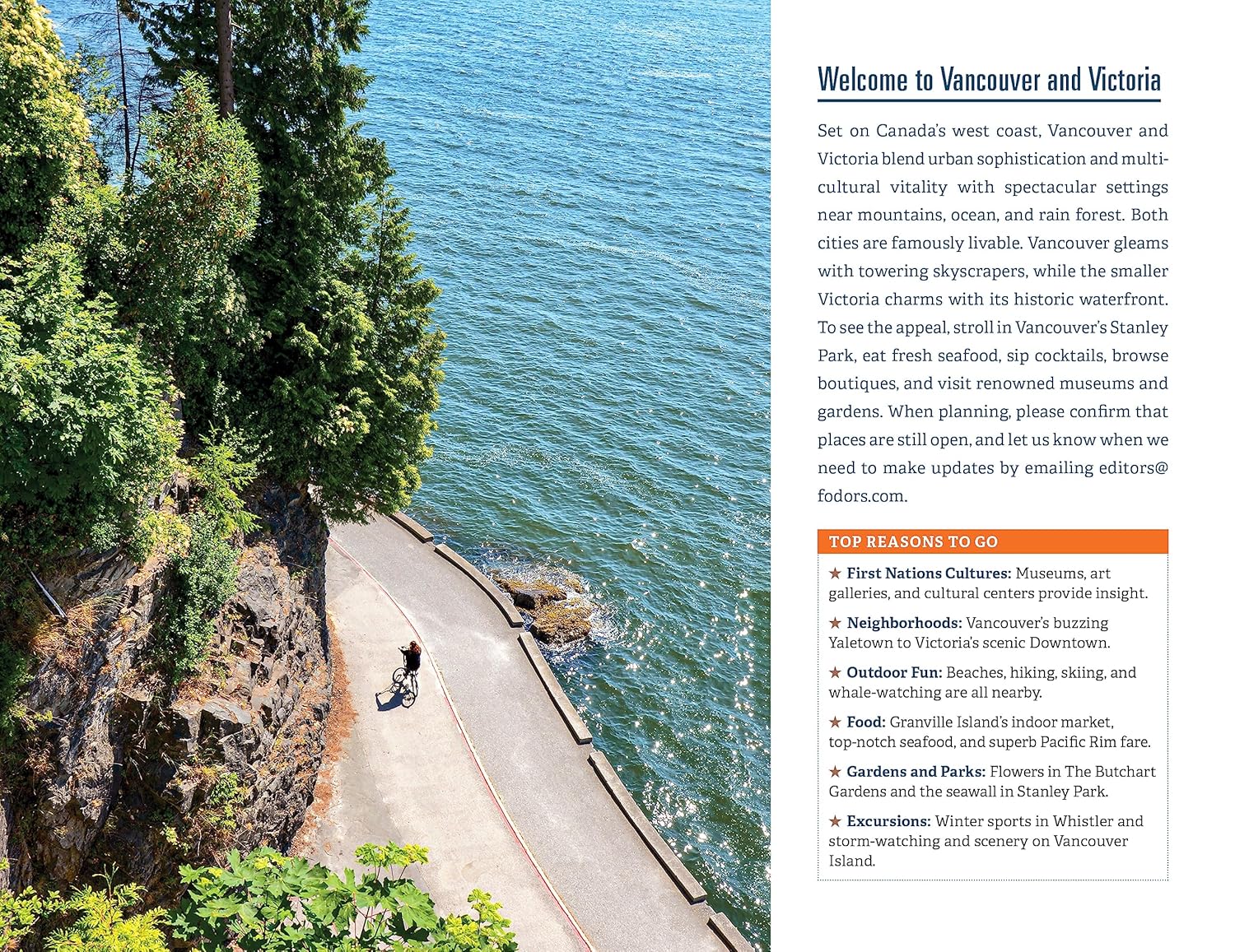 Fodor’s Vancouver and Victoria travel guide includes: