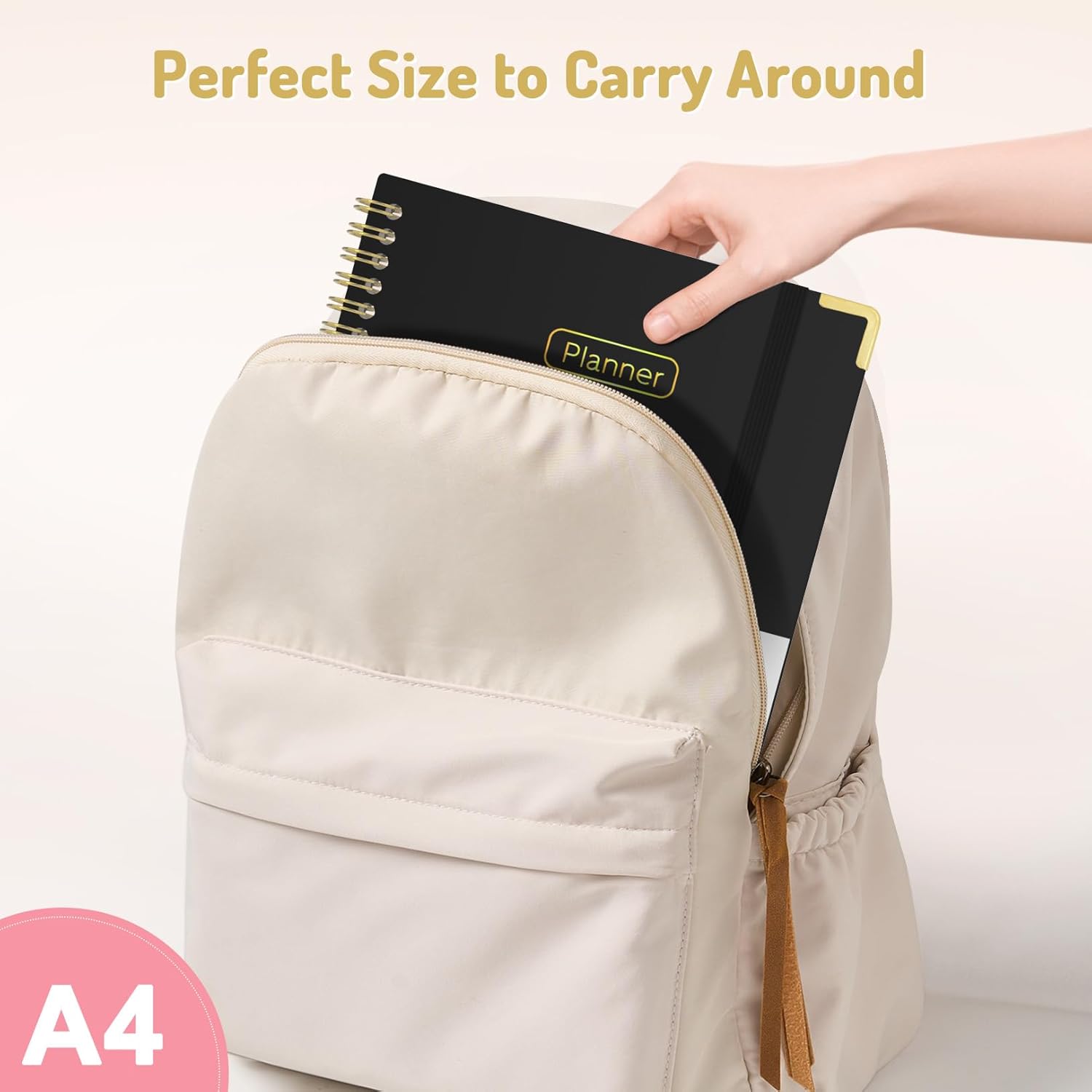 Upgraded Quality: Unlike other flimsy planners, our calendar planner features a sturdy hard cover with metal corner guards to prevent pages from creases or wrinkles. Monthly tabs for simplify navigation are laminated to resist tears. Thick, no-bleed paper for easy writing