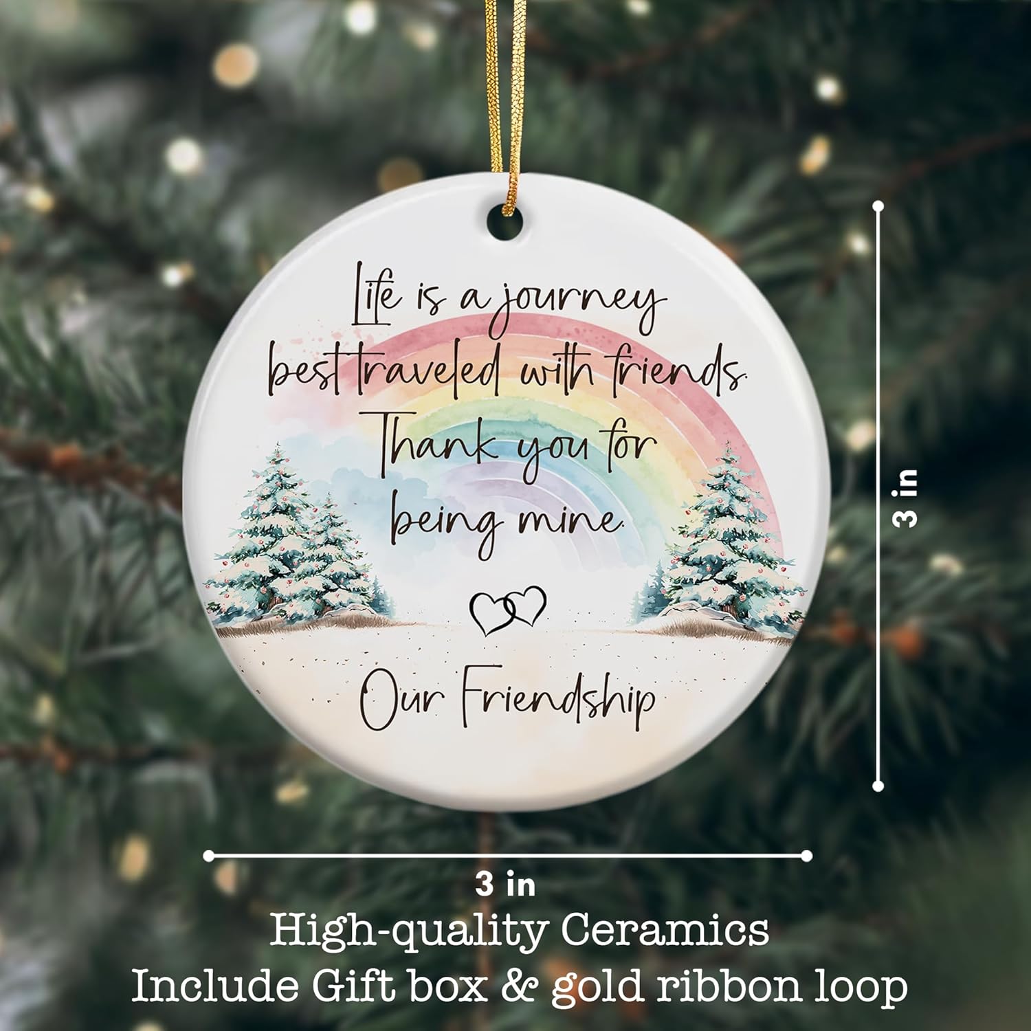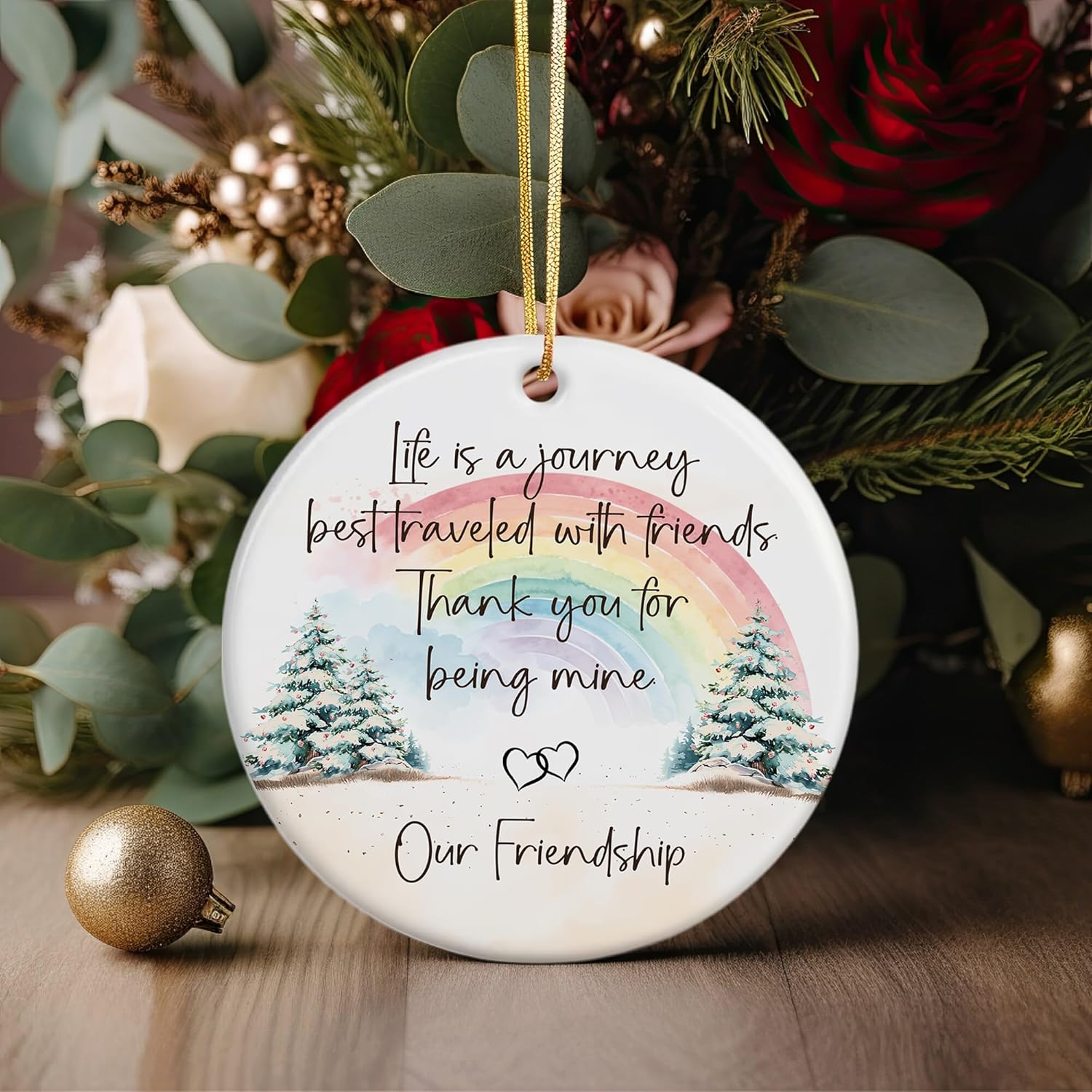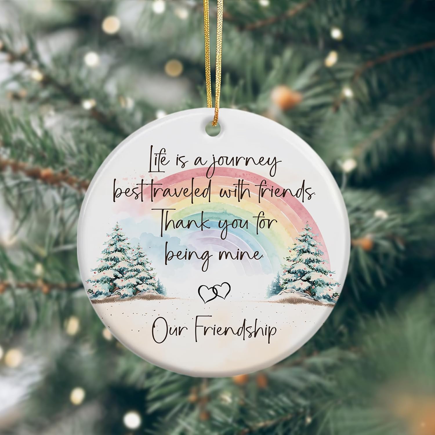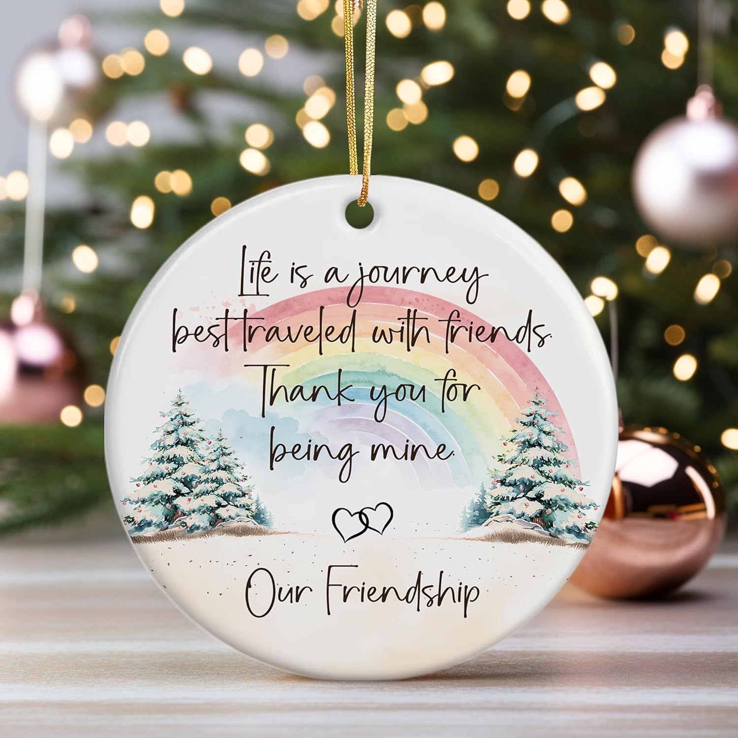 Friendship Ornament – Life is a Journey Best Traveled with Friends – Christmas Tree Hanging Decoration – Gift for Best Friend, Friendship Keepsake Ornament 2025 (LE22)