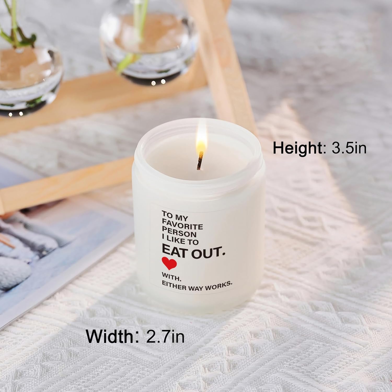 PERFECT FOR COUPLES: This fun candle features the playful message “To My Favorite Person I Like To Eat Out” – a cute way to show love and make your partner laugh.
