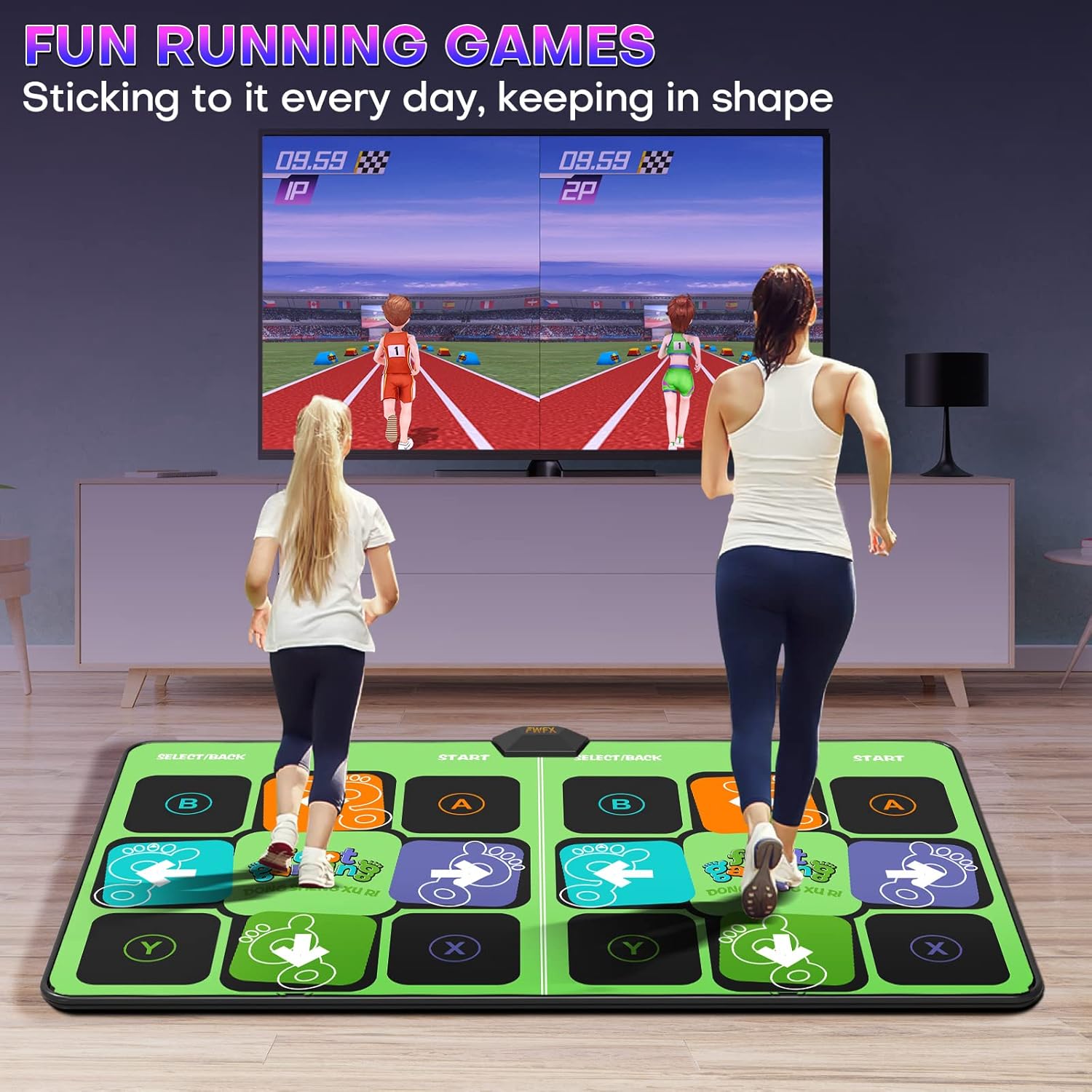 2025 Ultimate Family Fun & Fitness Dance Mat:Transform your living room into a high-energy dance arena with the FWFX Dual Dance Mat! Loaded with 149+ songs across genres, plus extra downloads. Choose single or double-player modes, 4-key/6-key controls, and hands & feet modes. Enjoy MTV, cartoon modes, 72 interactive games, 9 AR camera games, 3 running challenges, and 45+ yoga/fitness videos. Switch between dance battles, yoga flows, and wireless games for endless family fun!