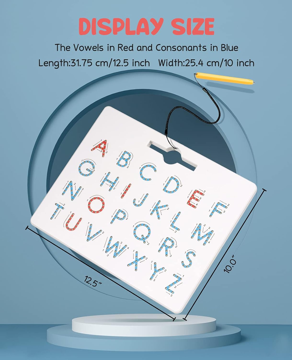2 Sided Letter Tracing Board: Upper case on one side and Lower case on the other side. The vowels in red and consonants in blue are convenient for children to learn pronunciation and grammar