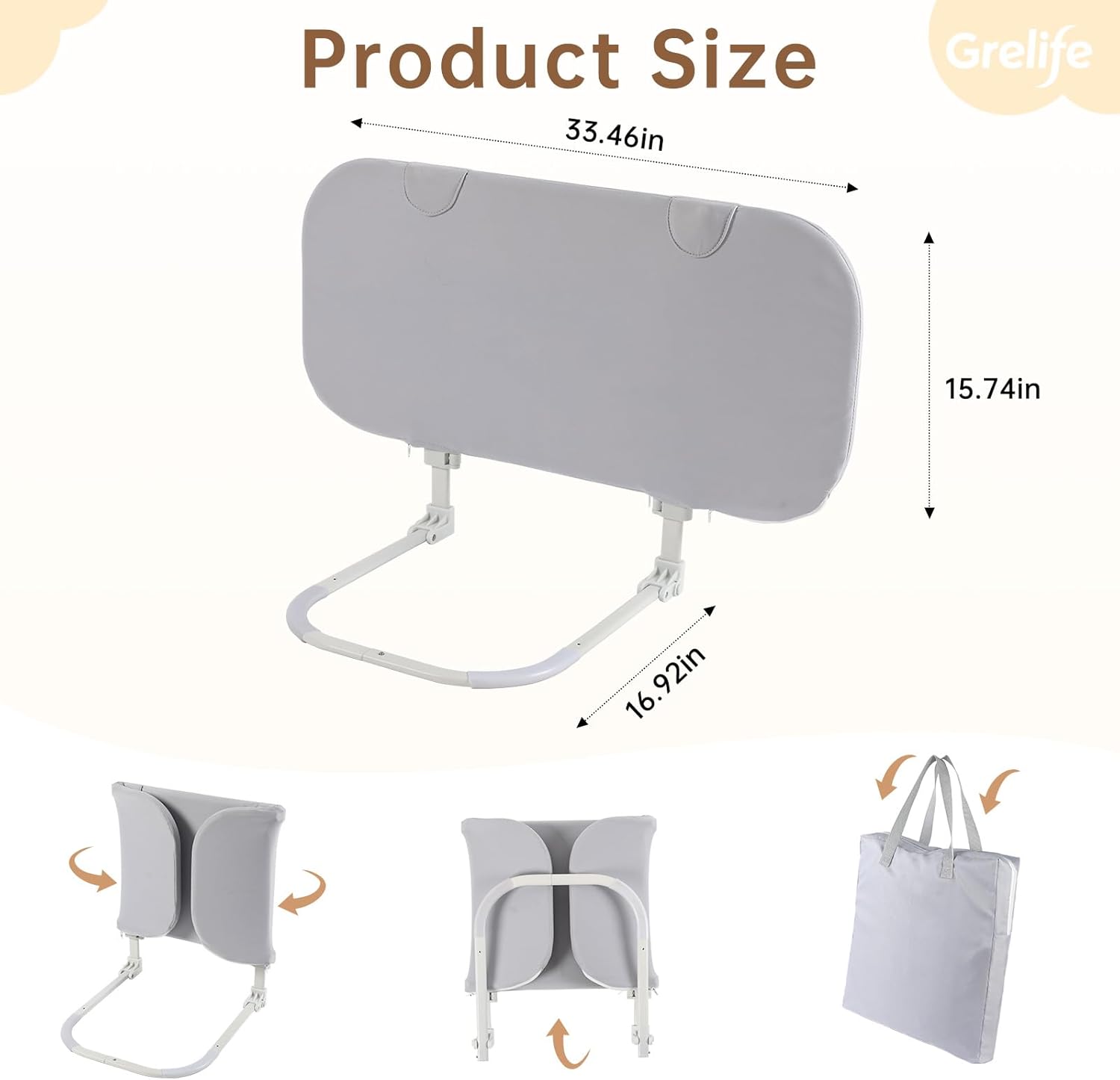 Grelife 33″ Portable Travel Bed Rail for Toddlers (Compact), Fast Install, Adjustable Height, Tall Toddler Bed Rails for Crib, Single, Twin Bed, Foldable Baby Bed Rail Guard for Box, Flat Bed
