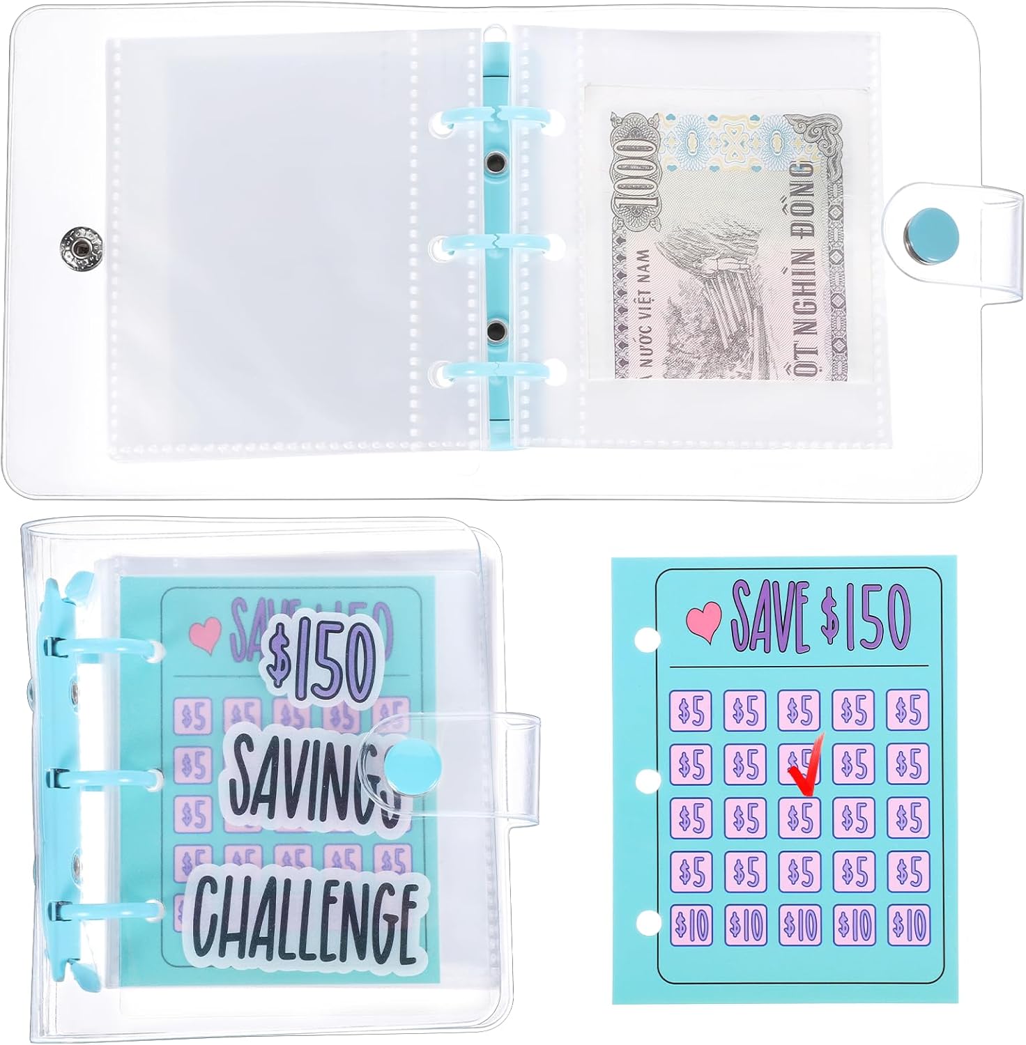 $150 Savings Challenge Binder: This money saving binder is a fun and creative way to save money, which is a great way to get the whole family involved in savings, and a great tool to teach children how save money. Mini binder is nice for those saving for anything