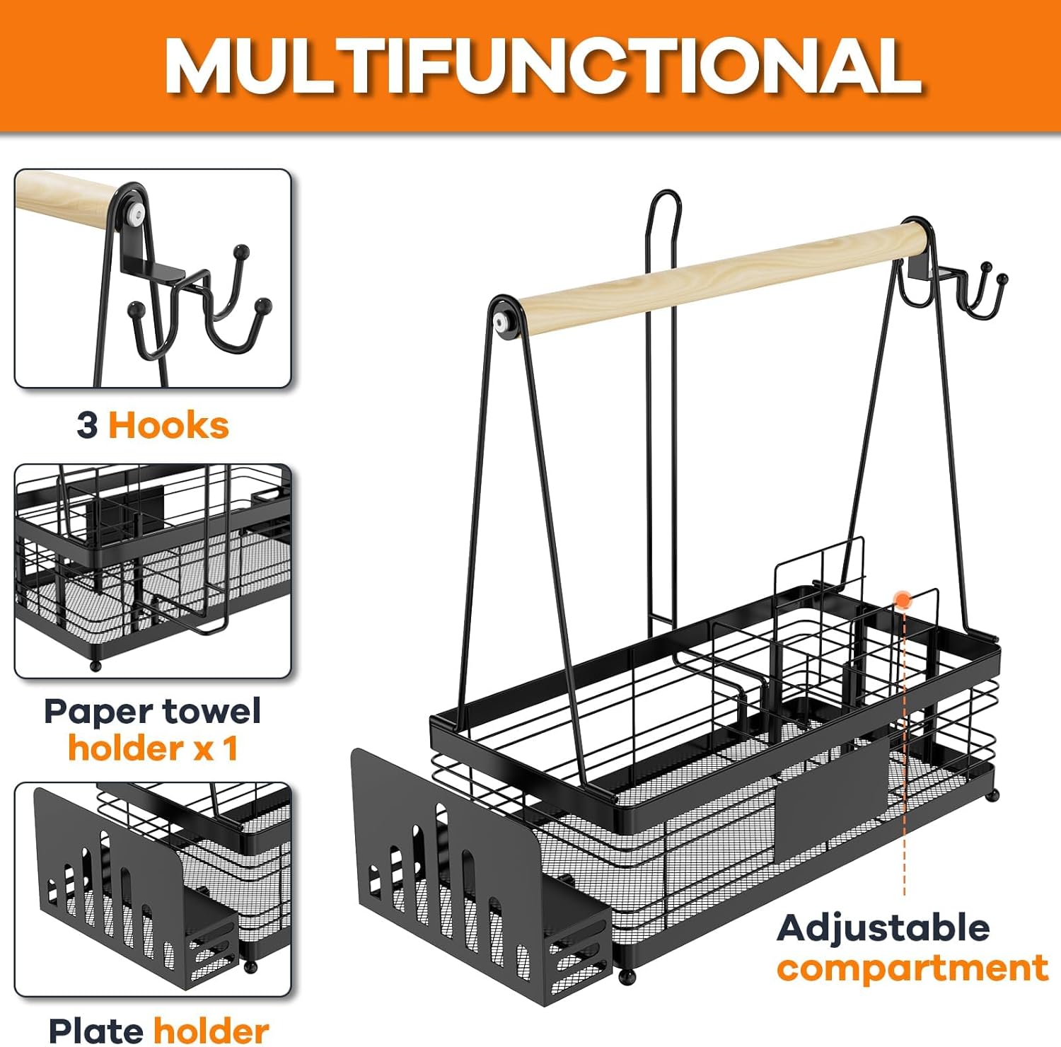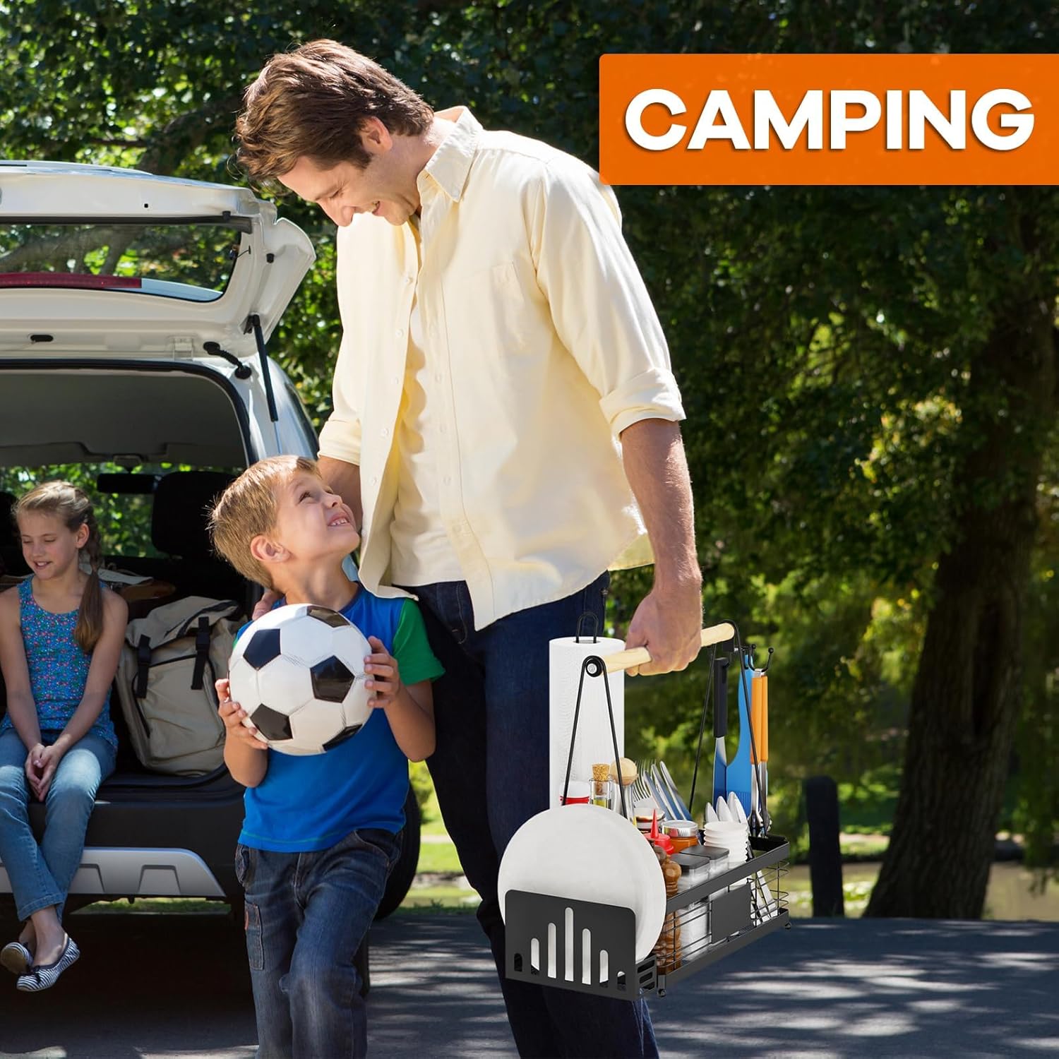 【Heavy Duty】 – Made with powder-coated steel to ensures its durability and ability to withstand any climate and use. Its rust-resistant properties make it perfect for outdoor activities, while its sturdy frame ensures that it can hold up against heavy use. Whether you’re using it for cleaning supplies, BBQ accessories, camper accessories for travel trailers, or as an outdoor organizer, the stainless steel caddy is a reliable and long-lasting choice