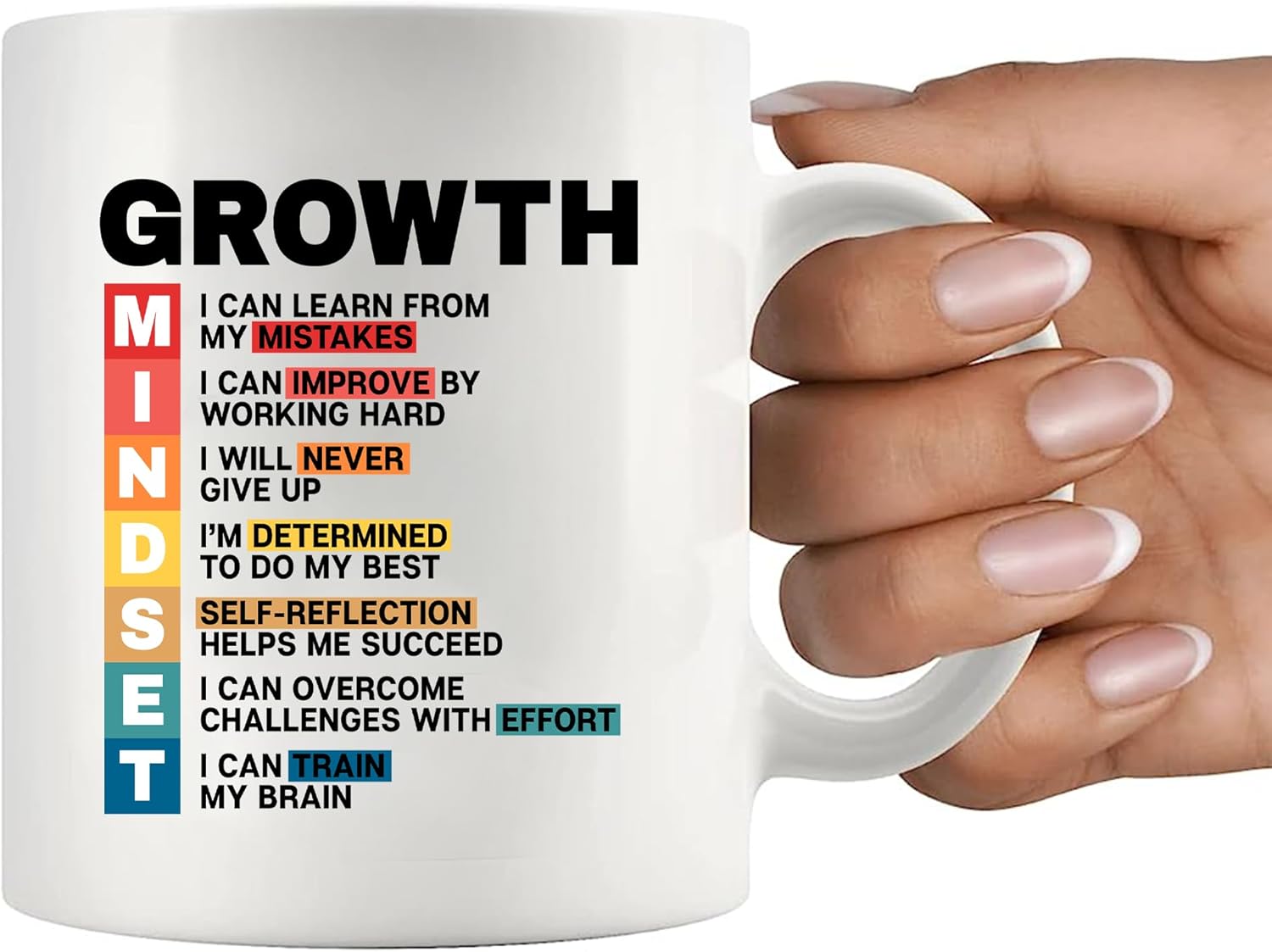 Ultimate Gift Mug That Stands Out From the Rest: Fuel your potential with this Growth Mindset Definition mug, a daily reminder of the power of positivity and resilience. Featuring the inspiring definition of a growth mindset, this 11 oz ceramic mug is for encouraging personal development, reflection, and a can-do attitude. Whether at home, in the office, or as a thoughtful gift, this coffee mug helps keep motivation in focus.