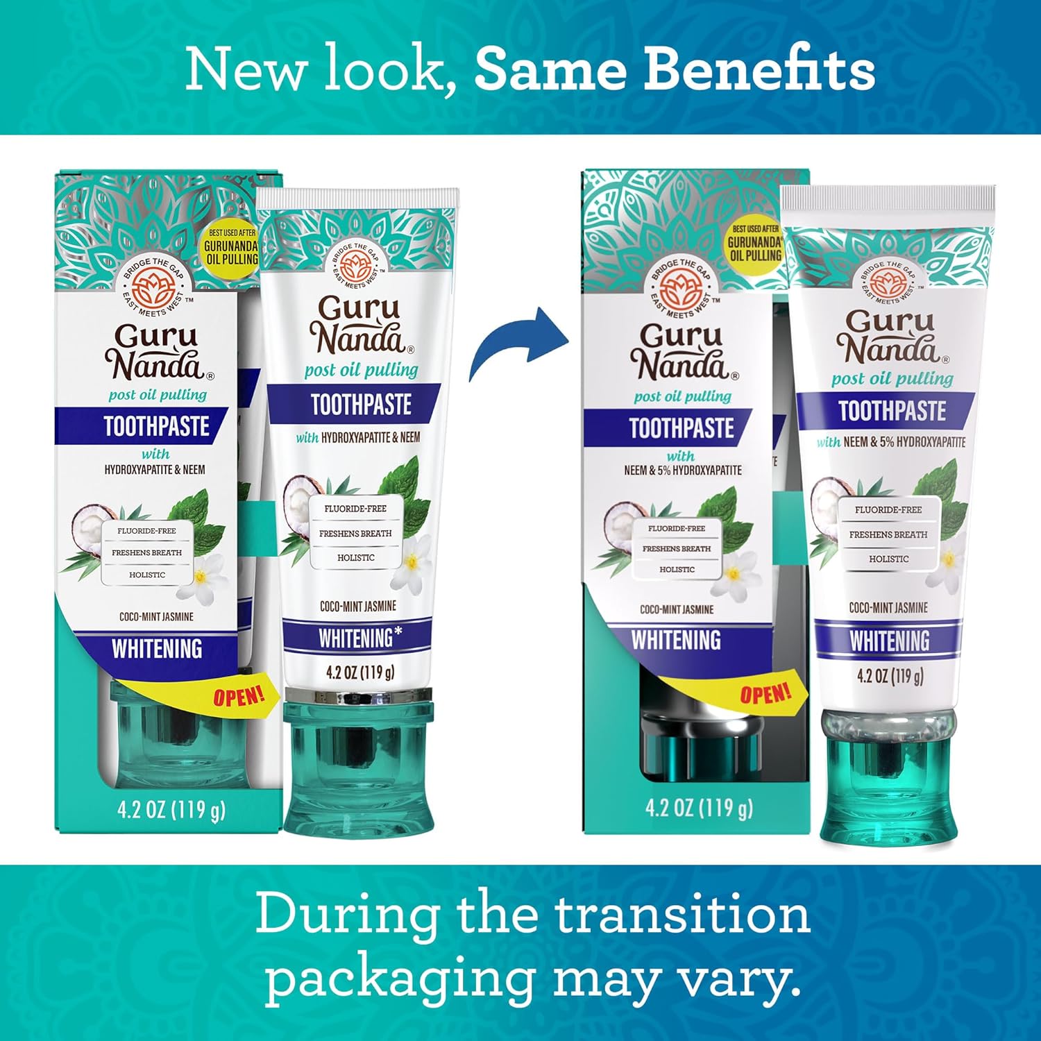 FLUORIDE-FREE, FORTIFYING FORMULA: GuruNanda toothpaste with Hydroxyapatite & Neem, aids in remineralization and deep cleans your teeth, enhancing enamel health and brightening your smile.
