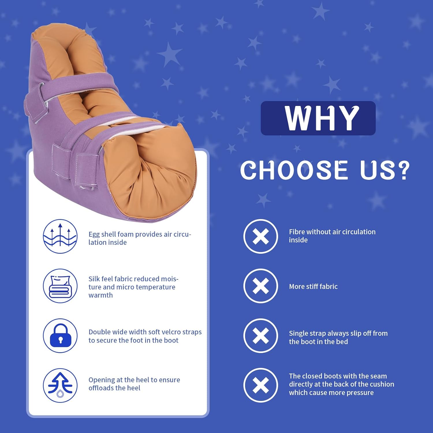 Easy to care :Three adjustable Velcro straps are easy for caregivers to use and are designed to avoid feet falling off the heel protector. Ideal for those looking for therapeutic comfort and relief