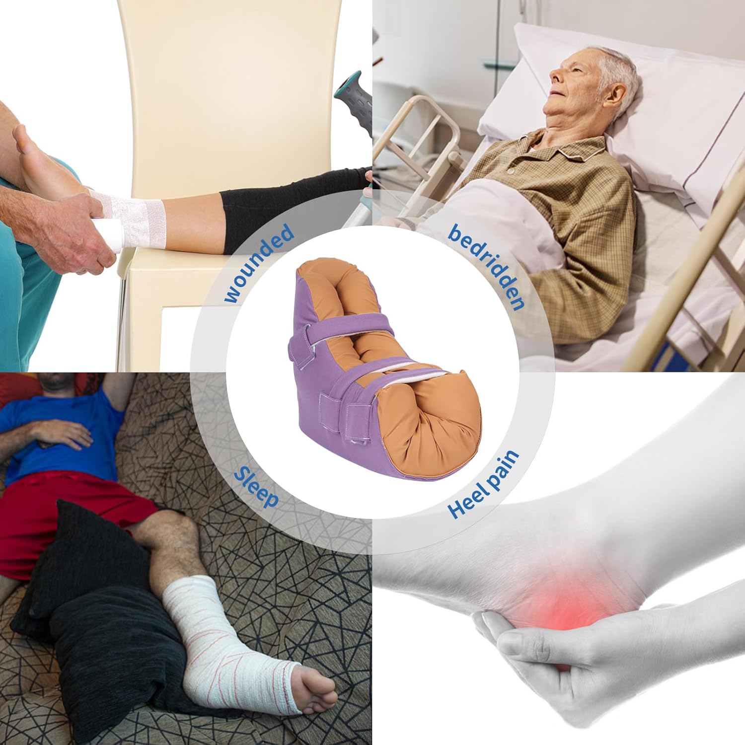 Innovative design to enhance healing: The heel protector is designed with a special opening that exposes the heel to the air, minimizing contact points. This feature is especially beneficial for people with leg injuries and those recovering from foot surgery. It helps in the healing of bed sores and heel blisters.