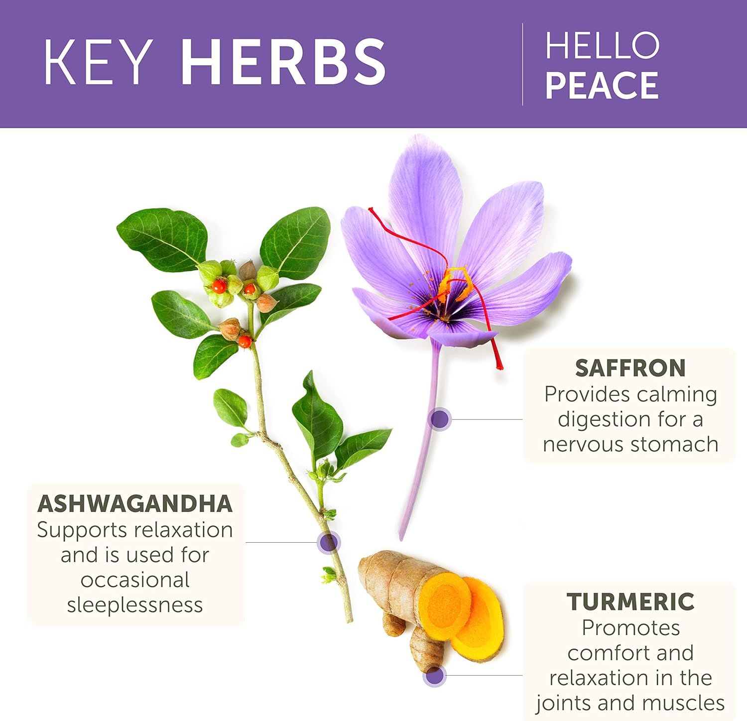 Relax and restore with Ayurveda: Unlike other adrenal support supplements, Hello Peace is formulated with Ayurvedic ingredients like Ashwagandha, Turmeric, Holy Basil (Tulsi), Amla and more