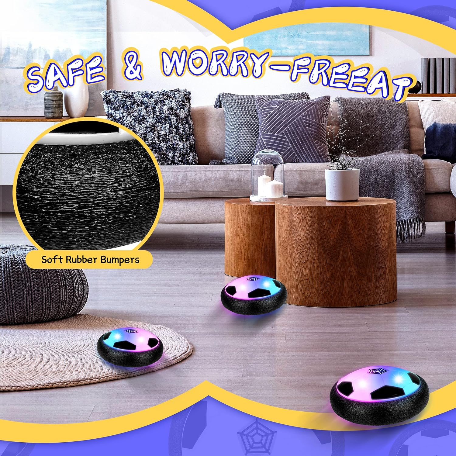 Safe and Durable: Made of special high-quality materials, our hover ball kids games is non-toxic and stable, with a soft foam bumper that protects both children and furniture. You can rest easy knowing your child is safe while they play