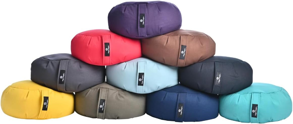 Hugger Mugger Zafu Meditation Cushion – Support in Cross-Legged Sitting, Buckwheat Filled, Durable Fabric, Convenient Handle, Handmade in USA