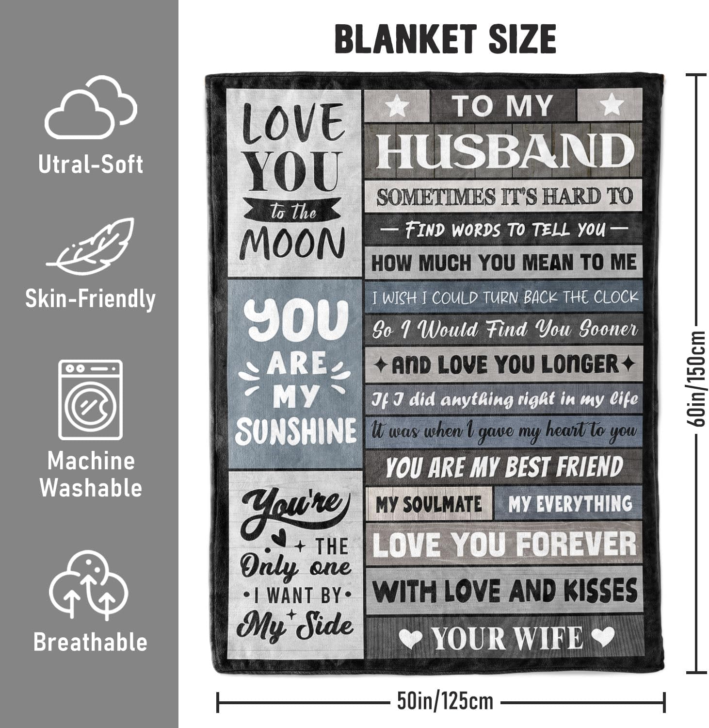 Husband Blanket: Measuring 50″x60″, this high-quality flannel fleece blanket provides the perfect balance of warmth and breathability, making it ideal for year-round comfort. Whether he’s watching TV, reading, or unwinding after a long day, this blanket offers a gentle, loving embrace whenever he needs it most