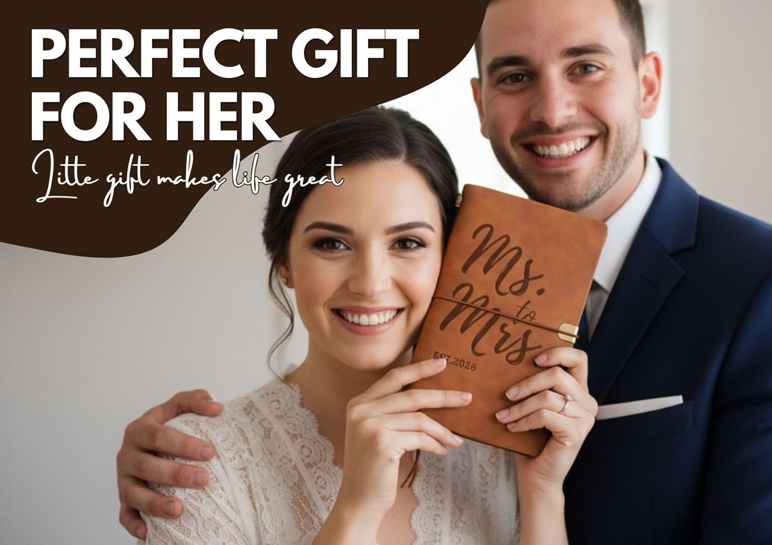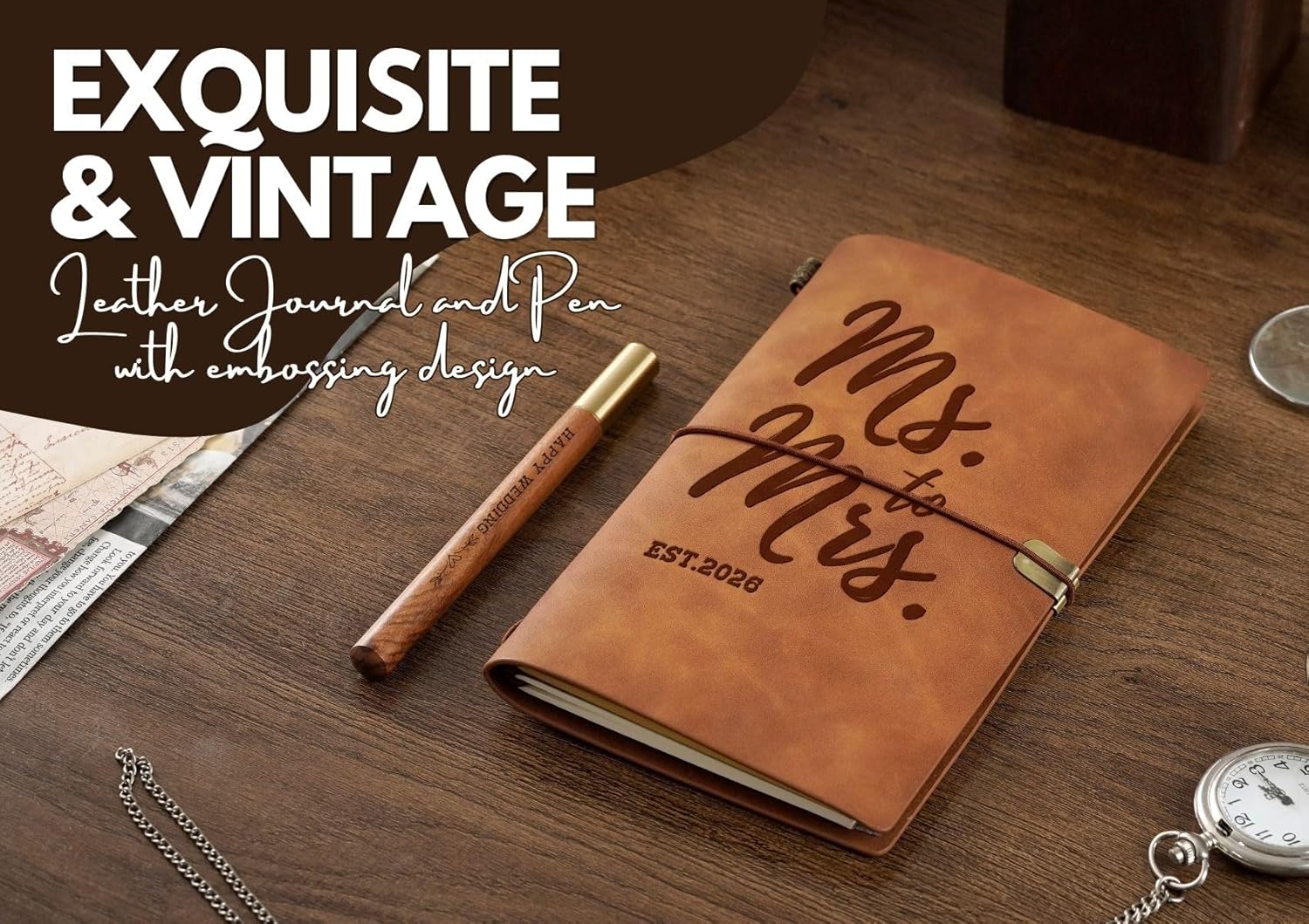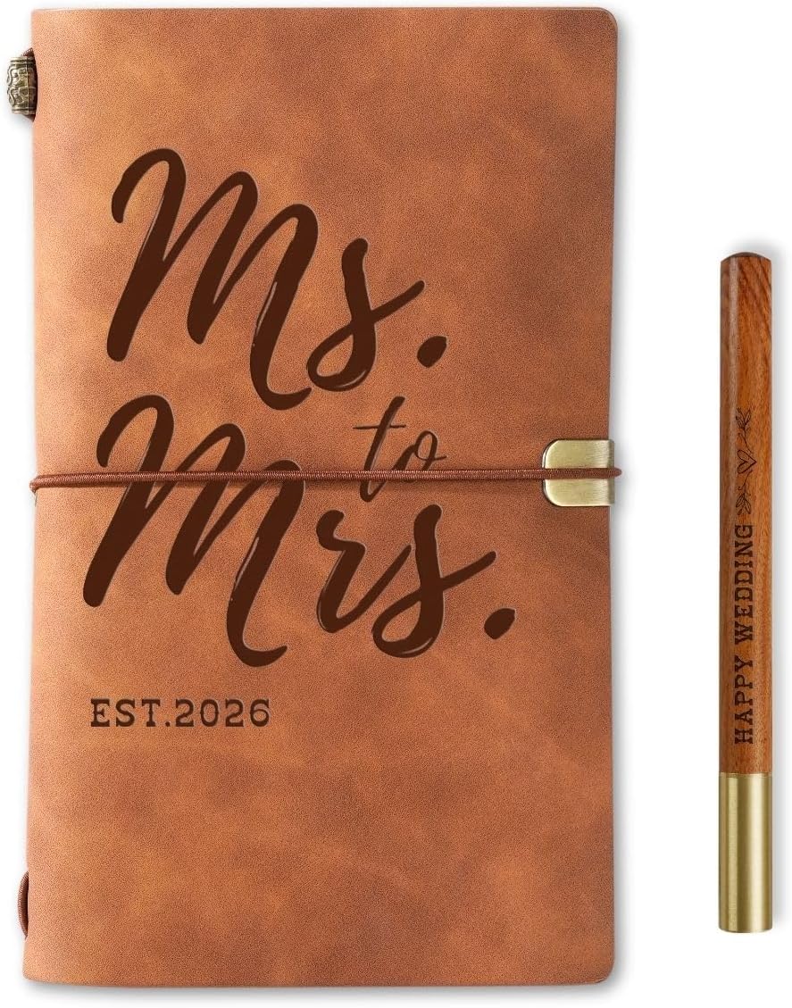 InnoBeta Bridal Gifts for Bride Women Wife Bride-to-be, Bridal Wedding Planning Journal and Pen Vegan Leather Refillable Notebook, Sketchbook, Travel Diary, 7.8×5 Inches, Ms to Mrs