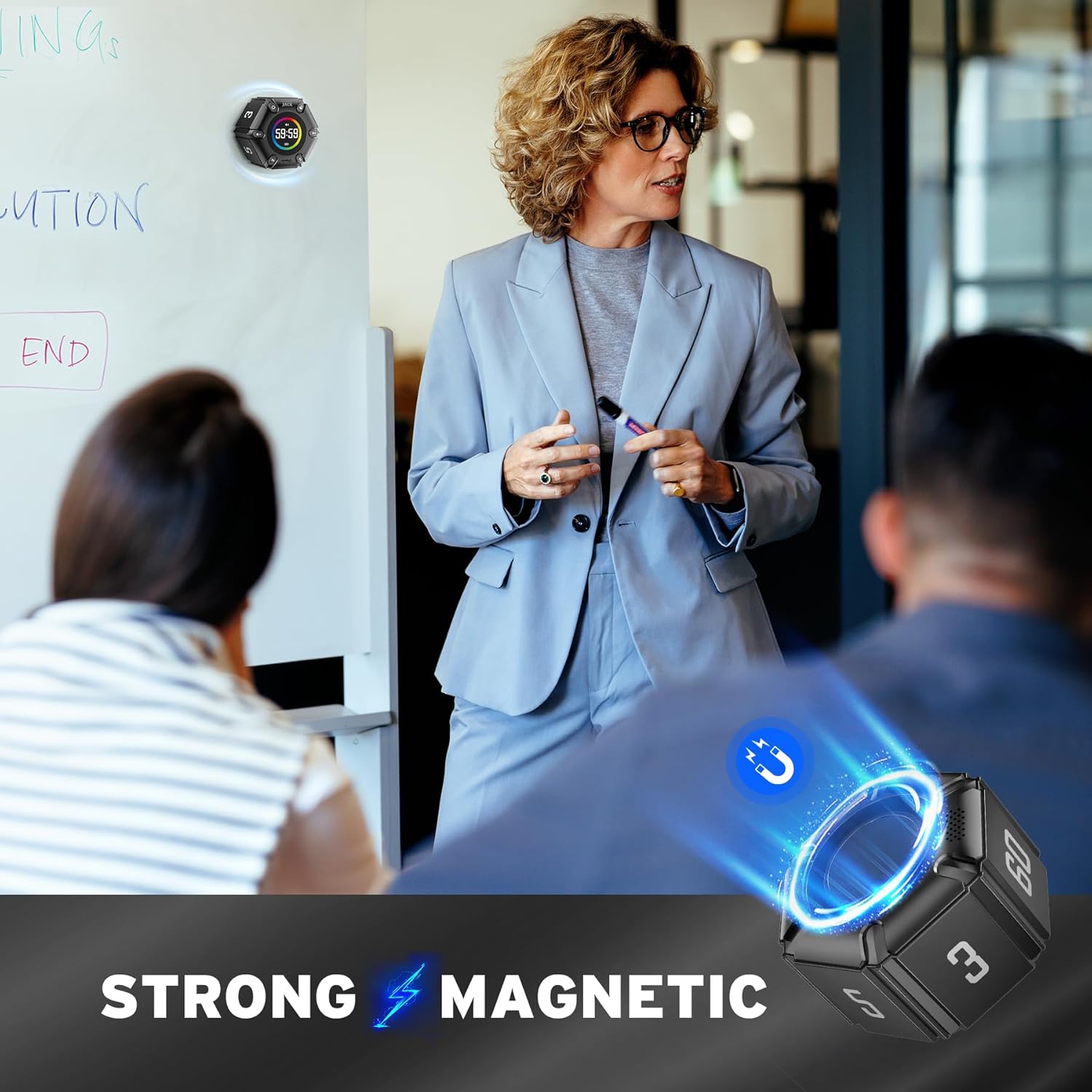 Magnetic function: Our products with a magnetic base, has a very strong magnetic force, can be firmly adsorbed on the refrigerator, whiteboard or any steel surface, when you make a report and presentation at work, you can use it to time, when the time is over, the product will not shake to the ground, the magnetic force is very strong.
