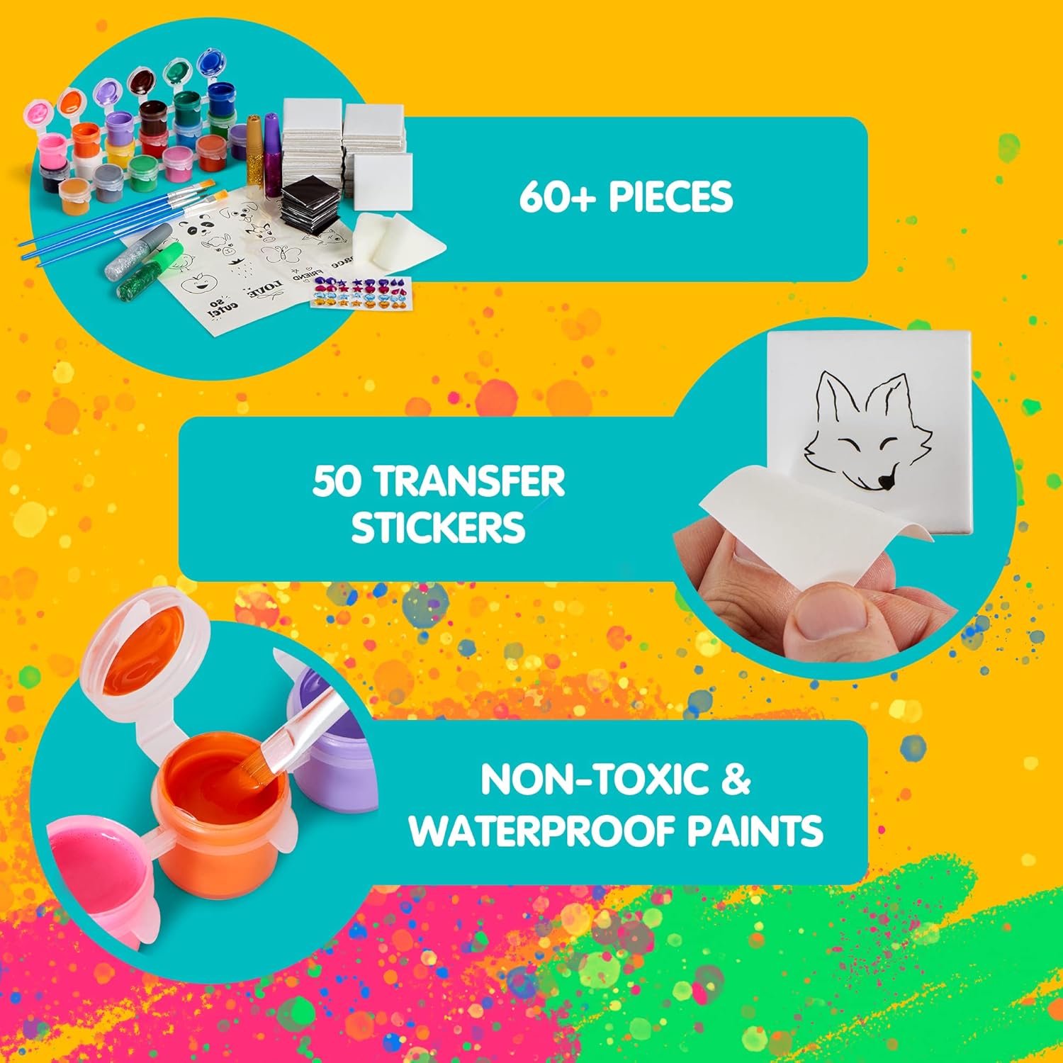 UNIQUE DESIGN & EASY TO USE. Our Tile Arts Painting Kit comes with different types of paints, brushes, and other craft materials for the kids to use! Tile painting kits are a great alternative because they will encourage your kids to love nature. It gives them a sense of creation.