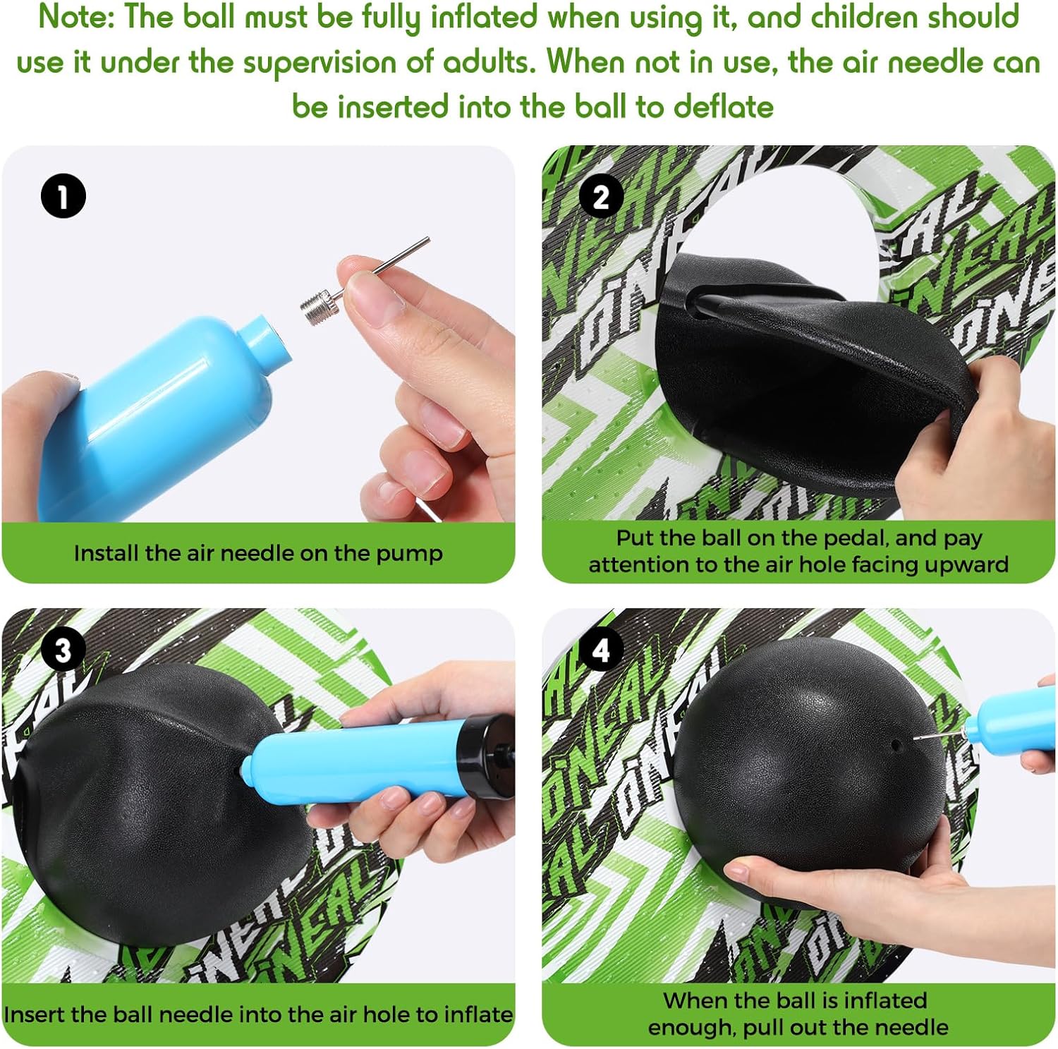 Package Includes: you will receive 2 pieces of pogo ball in 2 colors, blue and green, with stylish and eye catching patterns designs, and with 1 piece of pump, you can play competitively with your friends and family