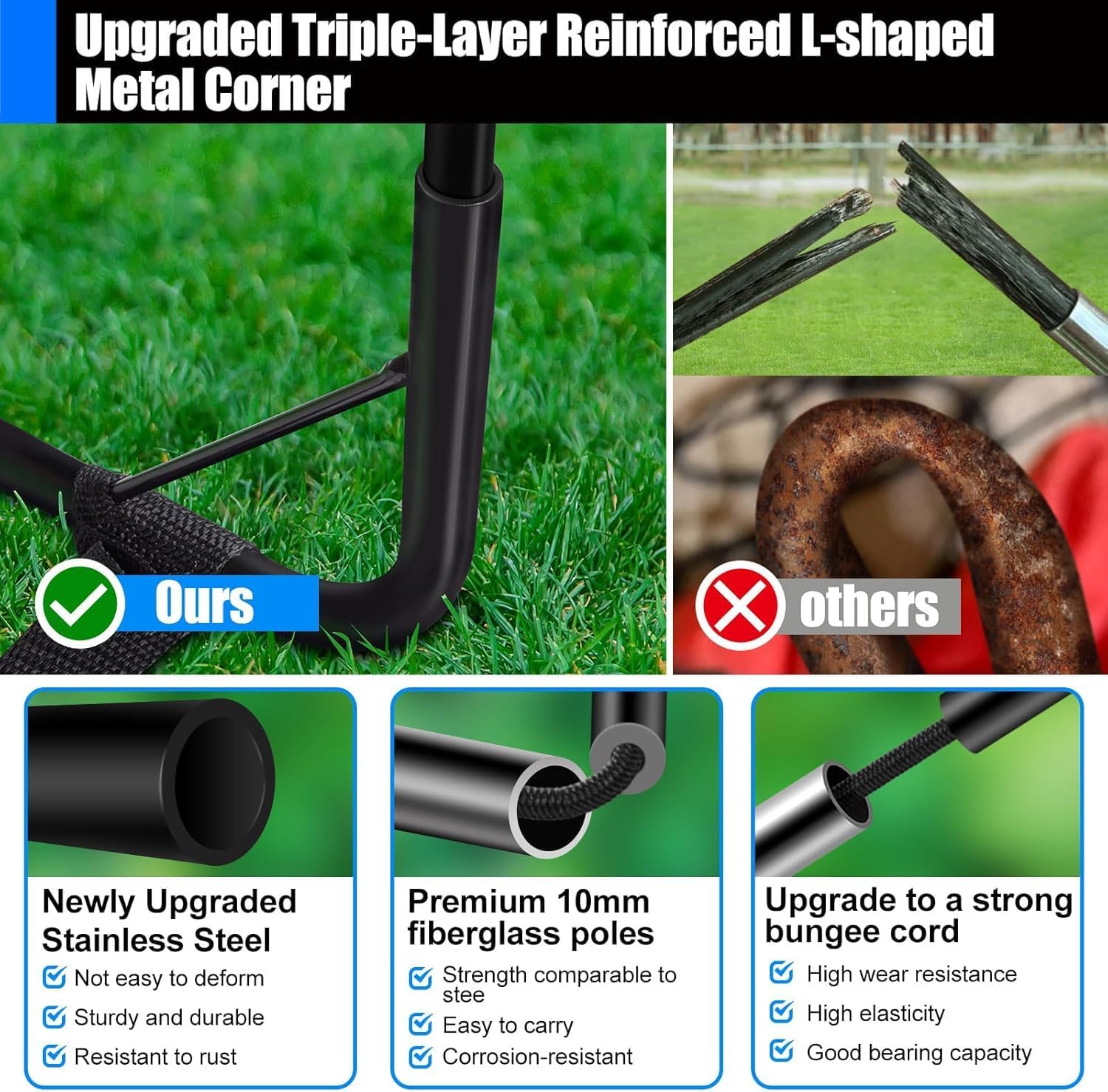 Entertainment and Training Anywhere: Comes with 8 heavy-duty ground stakes, which can firmly fix them on the ground, making them easy to carry anywhere for soccer practice. It can be used in a variety of terrains, such as backyards, parks, and even beaches. You can play interesting soccer games anytime, anywhere, and enjoy football with your family and friends