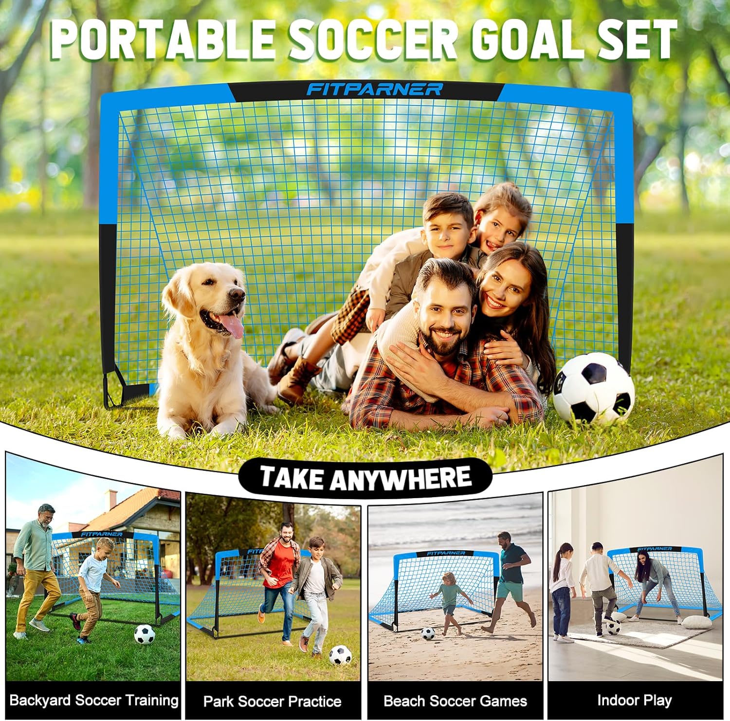 Practical soccer goal for kids ages 3-14:This pop up soccer goal set is perfect addition for young soccer enthusiasts age 3-5,6-8,10-12,12-14 years old for both boys and girls. This soccer goals for backyard not only promotes physical activity,improve soccer skills but also nurtures essential life skills such as teamwork,perseverance,and sportsmanship. but also nurtures essential life skills such as teamwork,perseverance,and sportsmanship