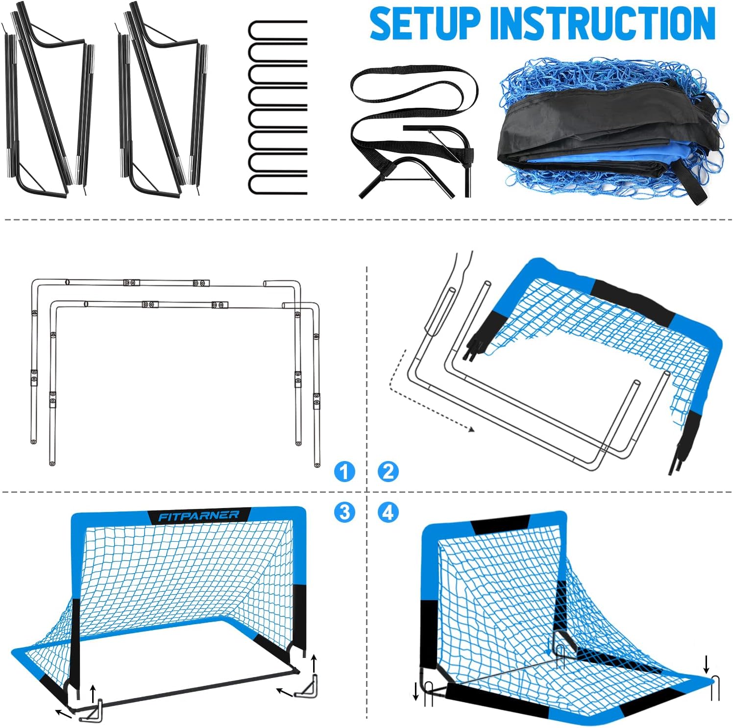 Complete Portable Kids Soccer Goal Set: This collapsible soccer goals for kids include everything you need for an exciting soccer experience. With 2 easy-fold kid’s 4X3 ft soccer goals; 1 std size 3 soccer ball; 1 inflation soccer pump, 10 soccer cones, 8 U-shaped heavy-duty ground nails and 1 carrying bag. Suitable for kids toddlers youth and adults for indoor and outdoor games.
