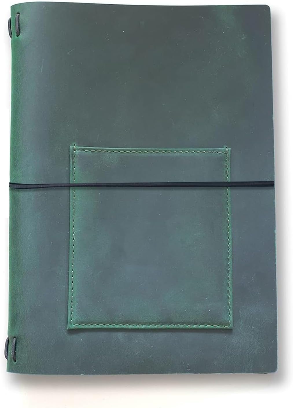Made of full grain cowhide (Crazy Horse), it can be used for decades;Suitable for A5 hard and soft cover notebooks, organizers, and workbooks;3 adjustable elastic cords can easily accommodate 3pcs A5 notebooks;