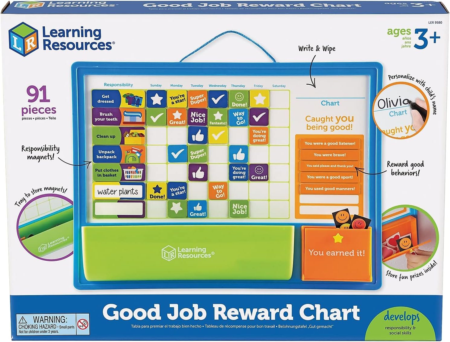 Learning Resources Good Job Reward Chart – 91 Piece Set, Custom Magnetic Chore and Responsibility Chart for Kids, Chore Magnets for Toddlers, Kids Job Chart