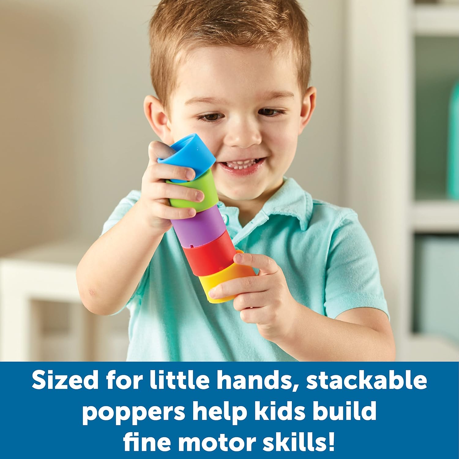 Fine Motor Fidget Fun: Made from soft silicone and sized for little hands, these colorful fidget poppers pop and stack, helping kids strengthen fine motor skills!