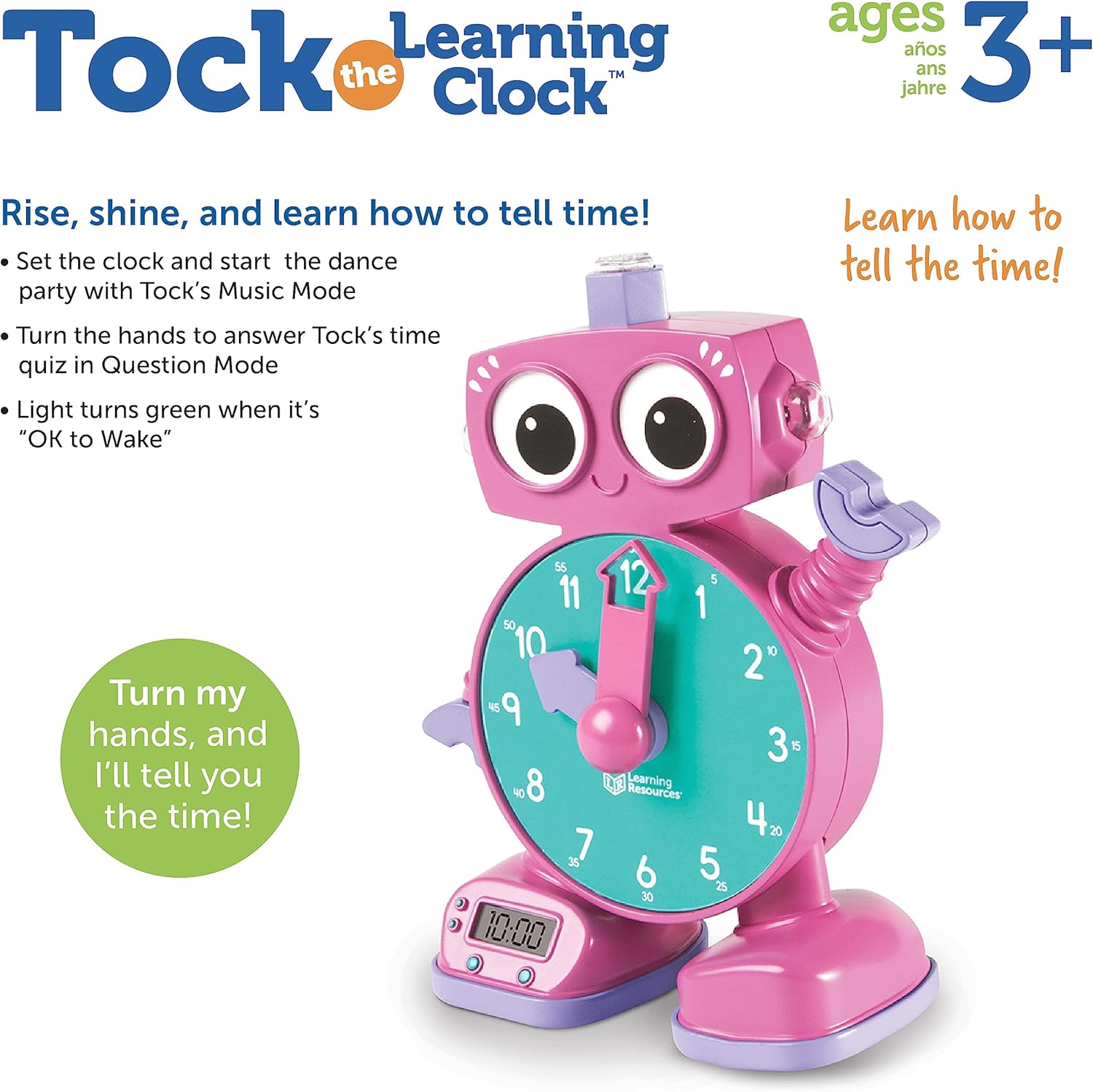 Learning Resources Tock The Learning Clock Pink – Digital Clock for Classroom, Telling Time, Kids Timer, Homeschool Essentials, Montessori, Toddler School Supplies, Gifts for Boys and Girls