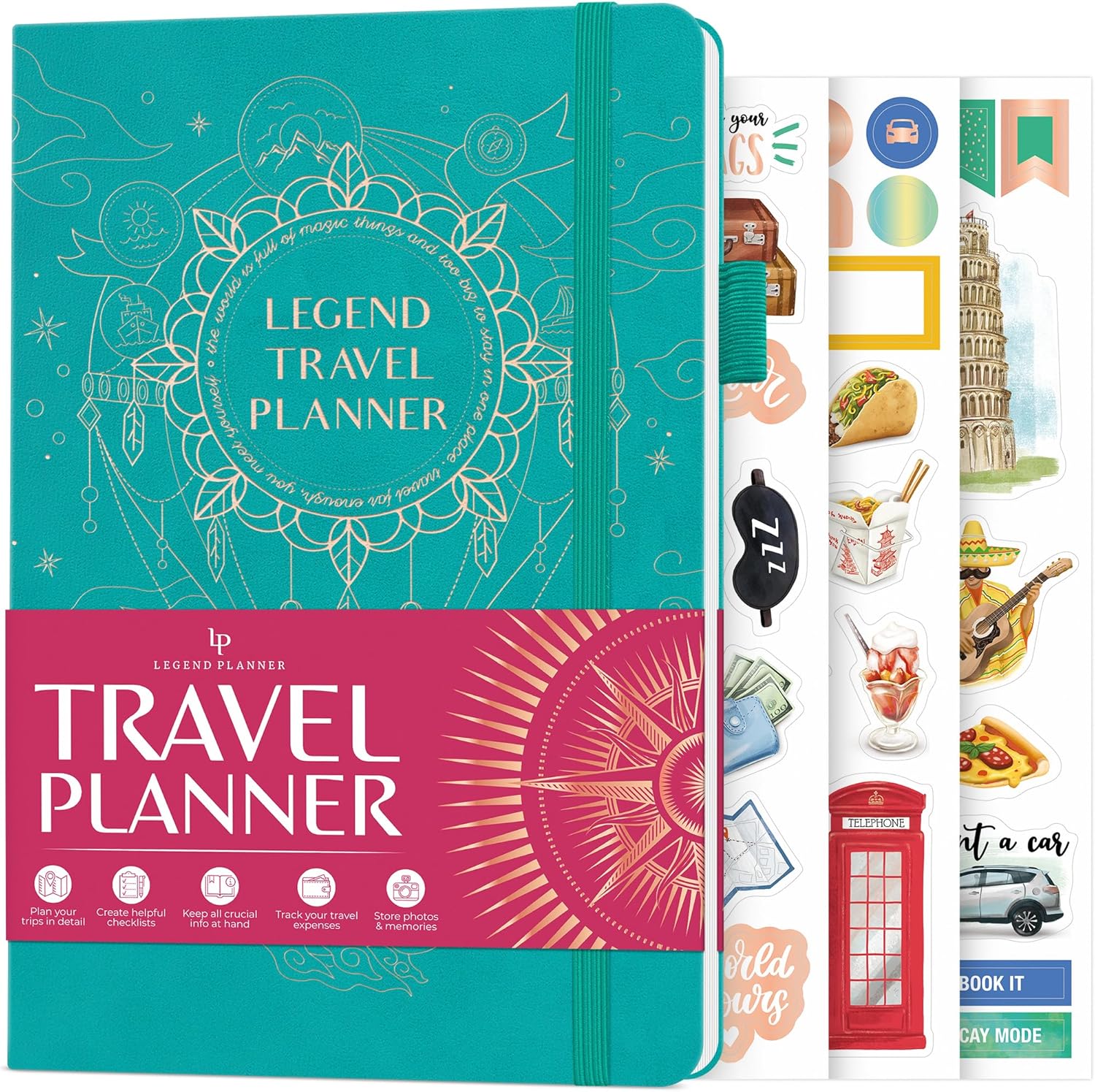Legend Travel Planner – Vacation Itinerary Organizer for Solo Travel & Couples – Travelling Journal for Women & Men – Traveling Log with Expense Tracker & Packing List – Hardcover (Viridian Green)