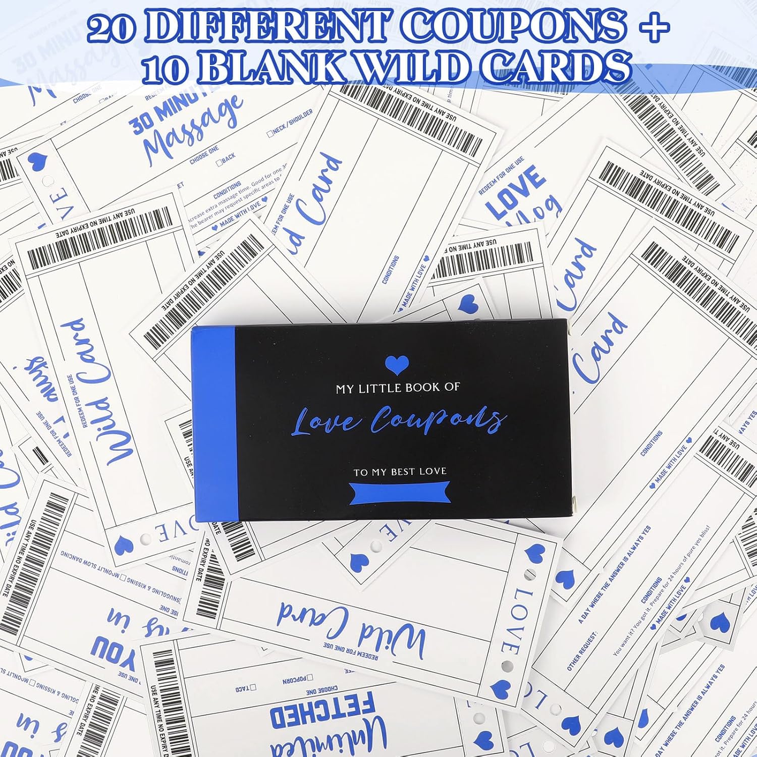 Love Coupon Book for Him – Romantic Love Gifts for Husband Boyfriend, 20 Fun Love Coupons +10 Blank Wild Cards- Couples Gifts for Anniversaries, Birthdays, Valentine’s Day & More!
