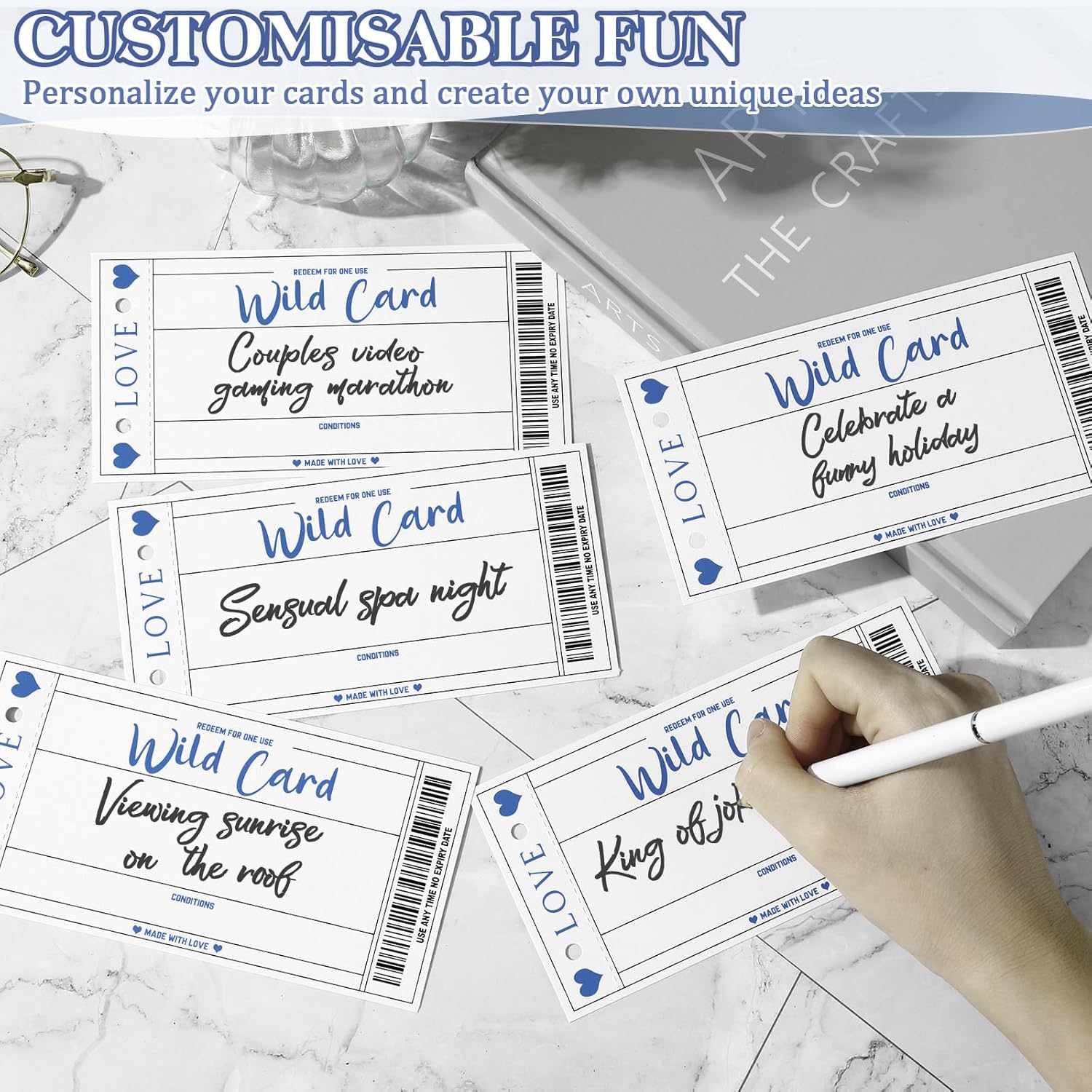 ✍️ PERSONLIZED FUN- Our Love Coupons have 30 different cards. In the first 20 cards, simply fill in the blanks or write down the special request. The last 10 cards are designed in blank wild cards to personalize your own ideas and make your romantic experience even more unique. This unique gift is something he will be sure to love!