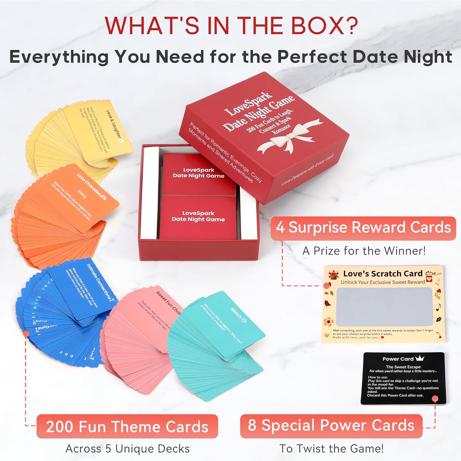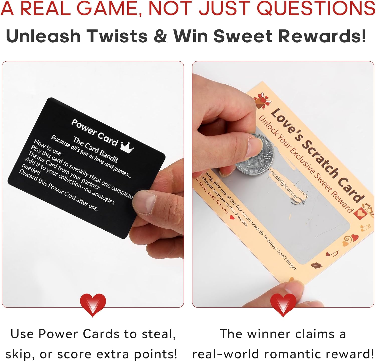 UNIQUE SCRATCH-OFF DATE NIGHT REVEAL ►Unlock real-world dates! Earn a mystery “Love Coupon” and scratch off date night ideas to reveal your next adventure—from cozy nights in to exciting outings. These interactive couple games create spontaneous fun and deepen your bond beyond the cards.