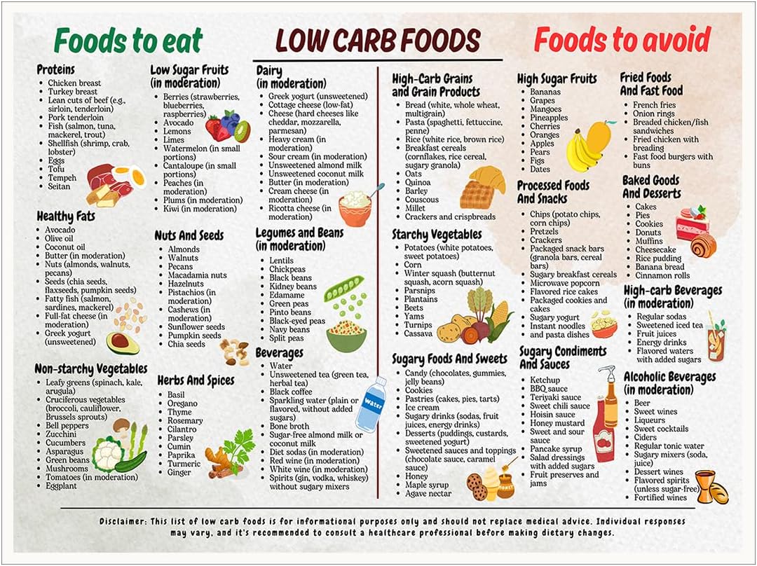 Low Carb Diet Canvas Print Nutrition Wall Art Keto Food List and Meal Plan Chart for Weight Loss or Diabetic Kitchen Decor Healthy Lifestyle Poster-11x14Inch Ready to Hang (Unframed)