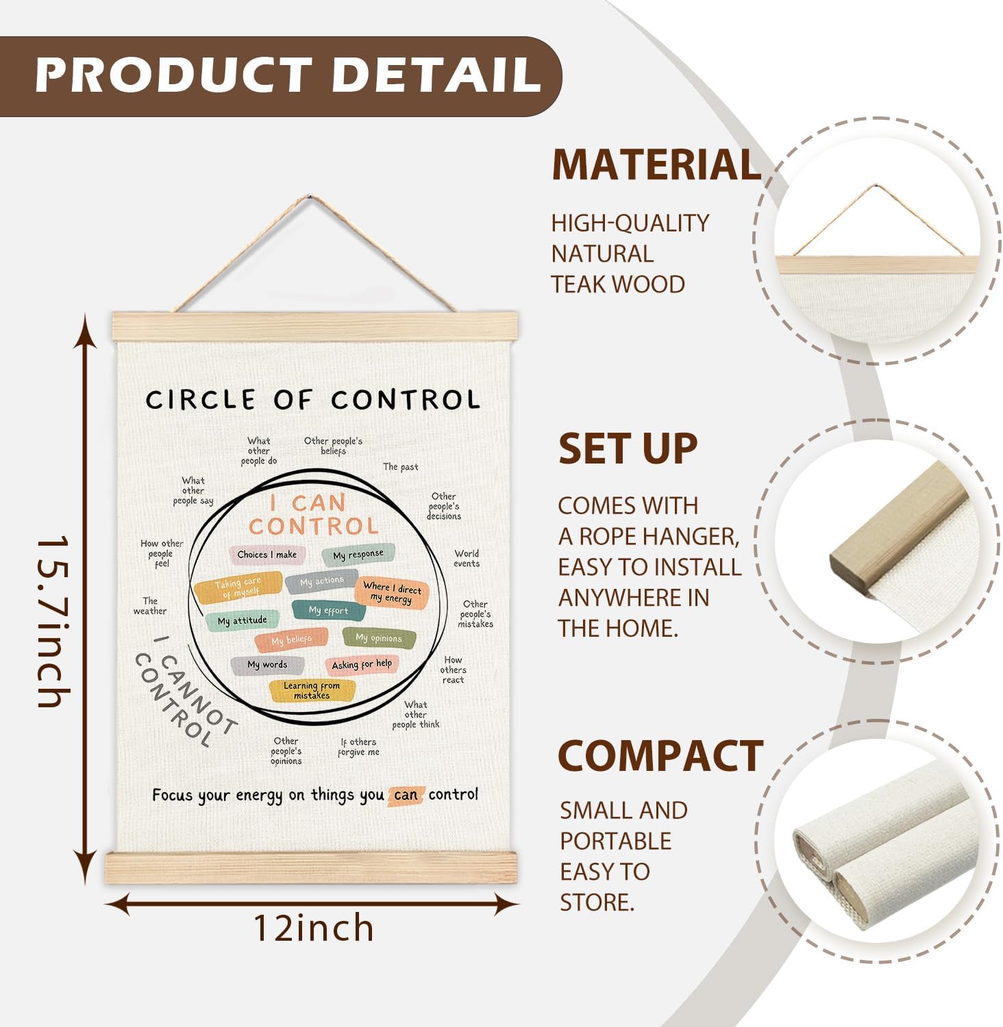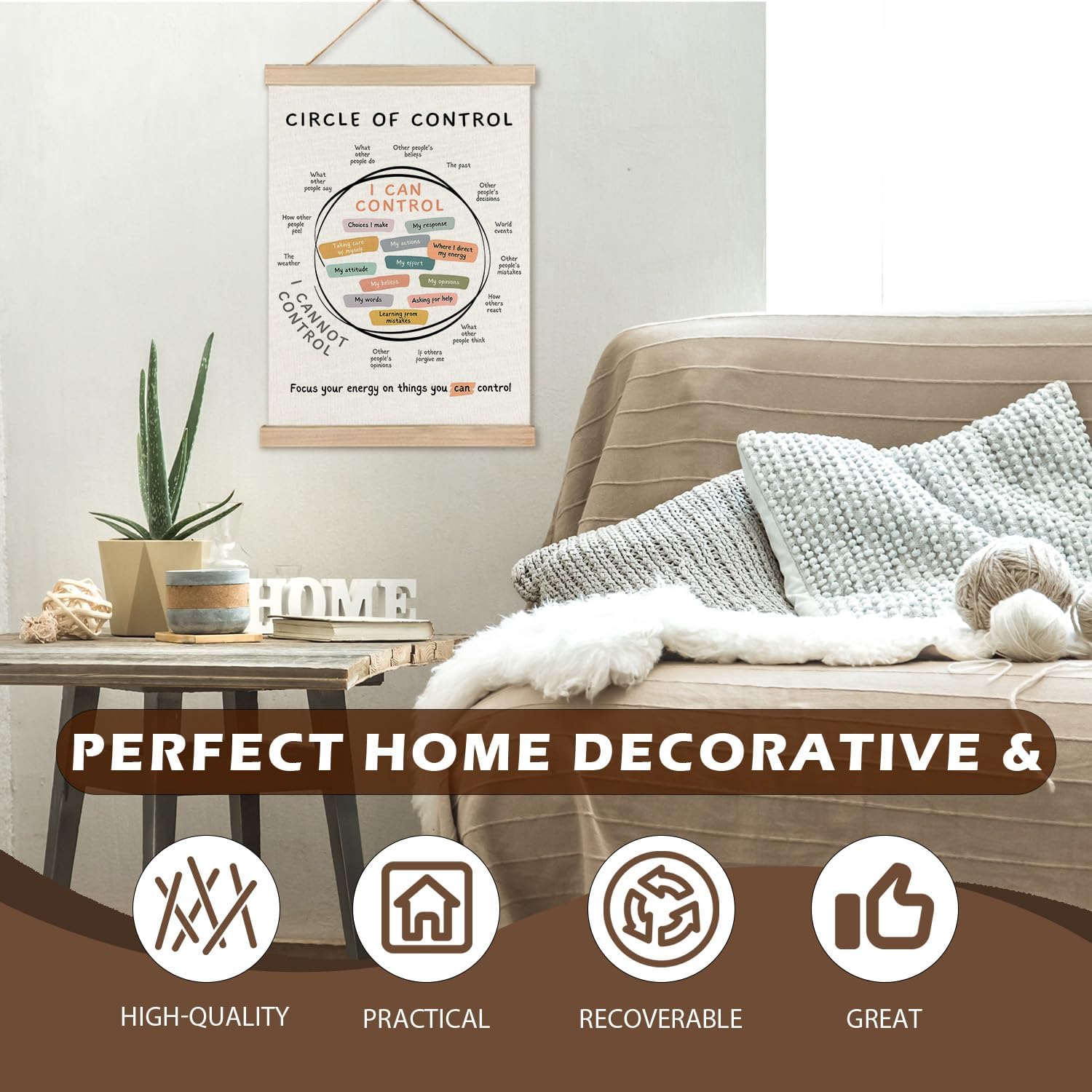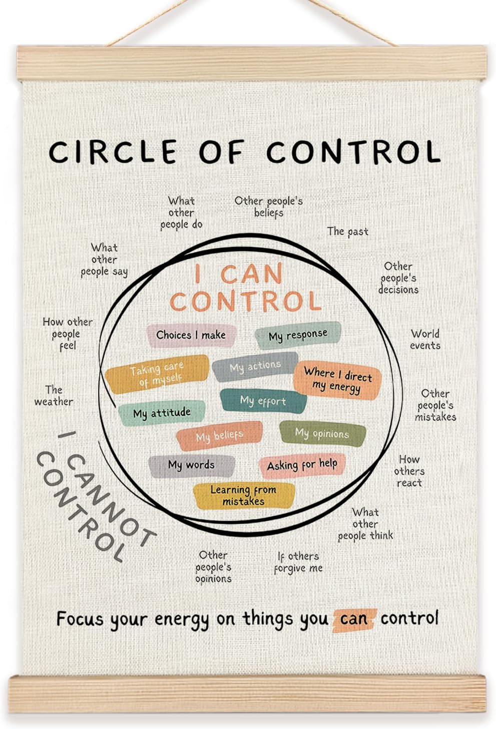 LZYRF Mental Health Wall Art Poster Framed, Therapy Office Must Haves, Circle of Control Mental Health Canvas Prints Wall Decor for Therapist Counselor Calming Office, 12×16 Inch