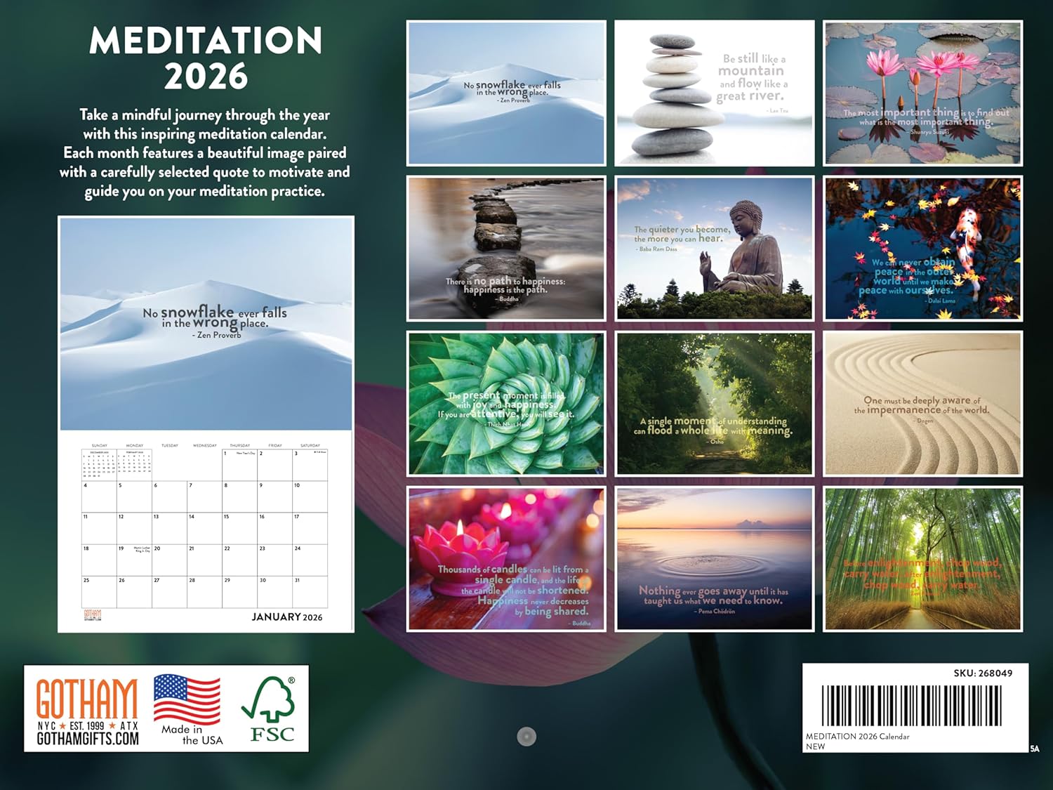 Meditation Calendar 2026 Monthly Wall Calender 12 Month | American Made In The USA