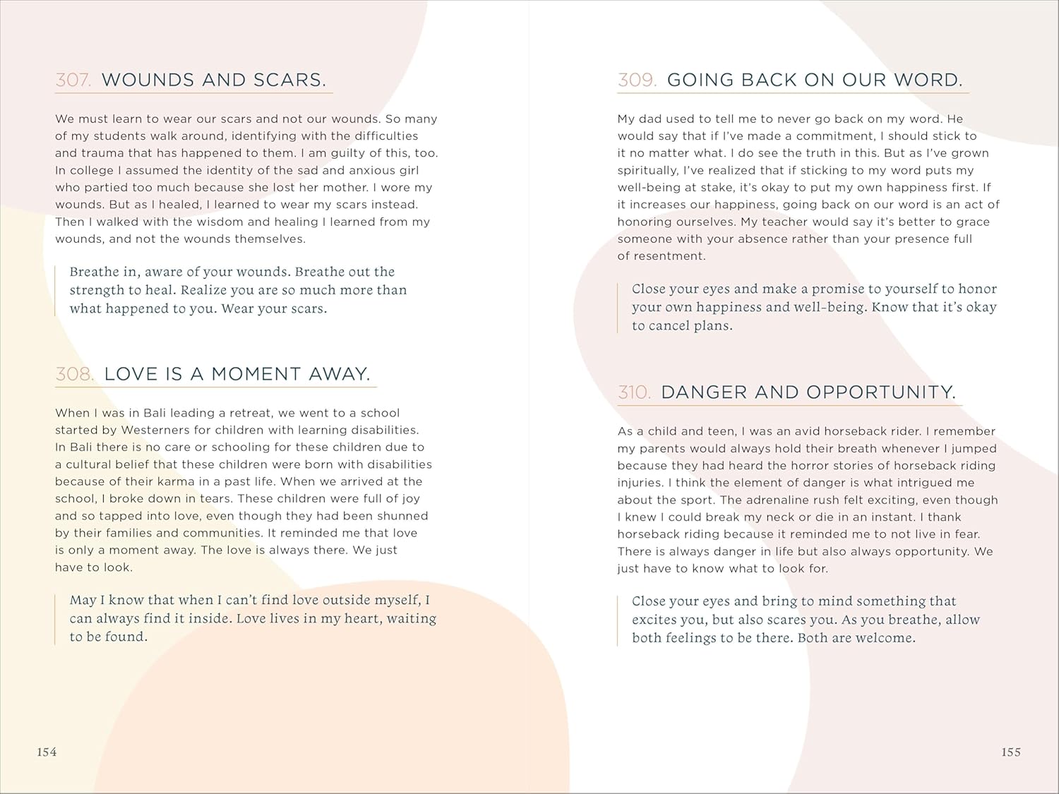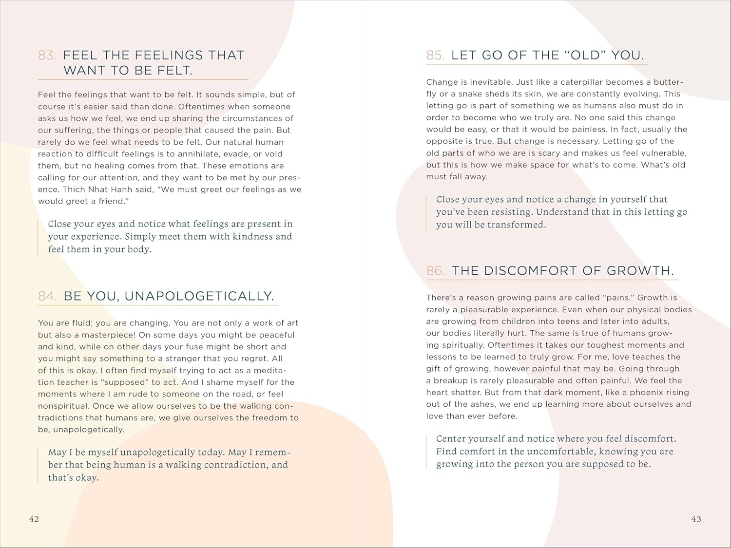Short and sweet entries―The prompts are pleasant, easy, and brief, so anyone can find a few minutes to stop and reflect.Habitual self-love―Each meditation is focused on anecdotes and teachings that will help make self-love a consistent practice.Flexible use―Use these meditation prompts as often as you like or in any order that you like―and when you finish them all, you can revisit your favorites for inspiration.