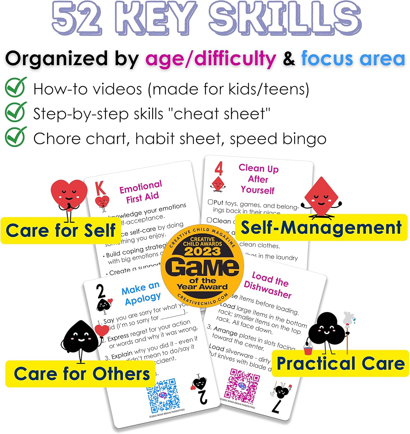 Mind Brain Emotion 52 Essential Life Skills: No-Excuses Game to Teach Kids, Teens & Adults How to Care for Self & Chores, Practical Solution for Responsible Boys, Confident Girls, Happy Family