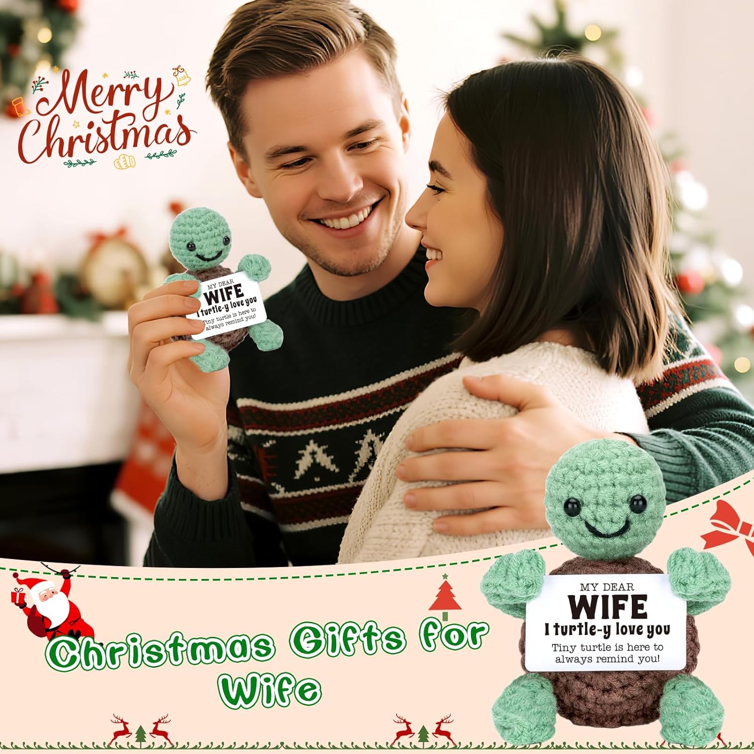 Wife Turtle Companion: Each knitted turtle about 2.3 x 1.4 x 3.5 inches, matching with card, compact and fit perfectly in pockets or backpacks, easy to carry; Mini turtle acts as forever accompany will cheer you up and give you emotional active support